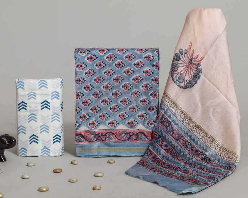 TRADITIONAL HAND BLOCK CHANDERI SILK SUIT SET WITH CHANDERI DUPPTTA (CHDYS175)