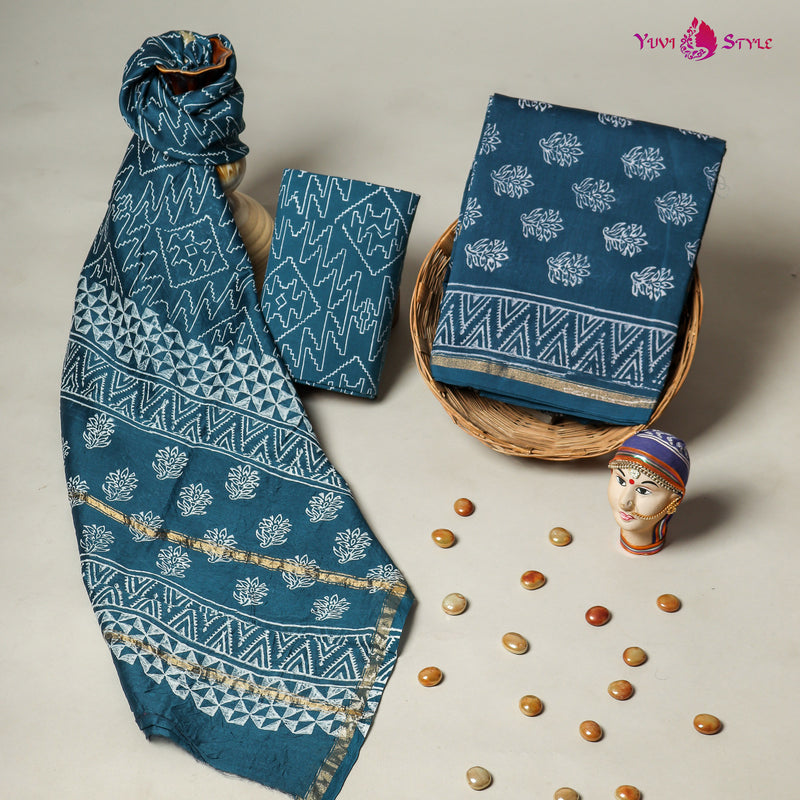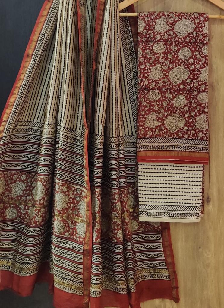 TRADITIONAL HAND BLOCK CHANDERI SILK SUIT SET WITH CHANDERI DUPPTTA (CHDYS171)