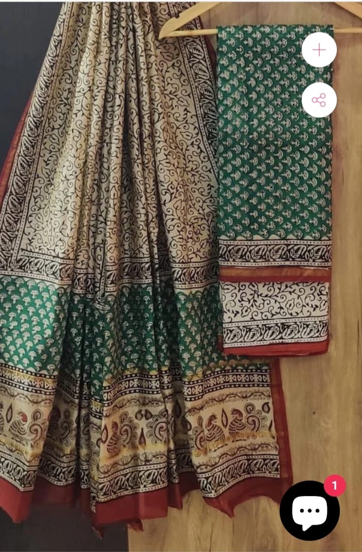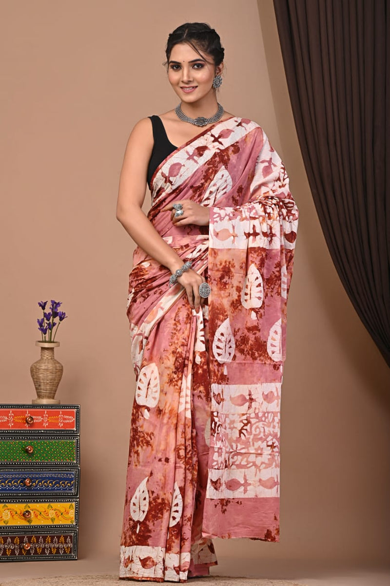 TRADITIONAL HAND BLOCK PRINT COTTON MULMUL SAREE WITH BLOUSE (CMSYS06)