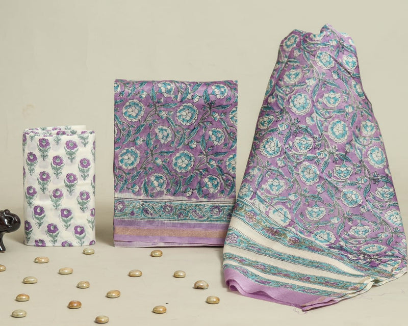 TRADITIONAL HAND BLOCK CHANDERI SILK SUIT SET WITH CHANDERI DUPATTA (CHDYS260)