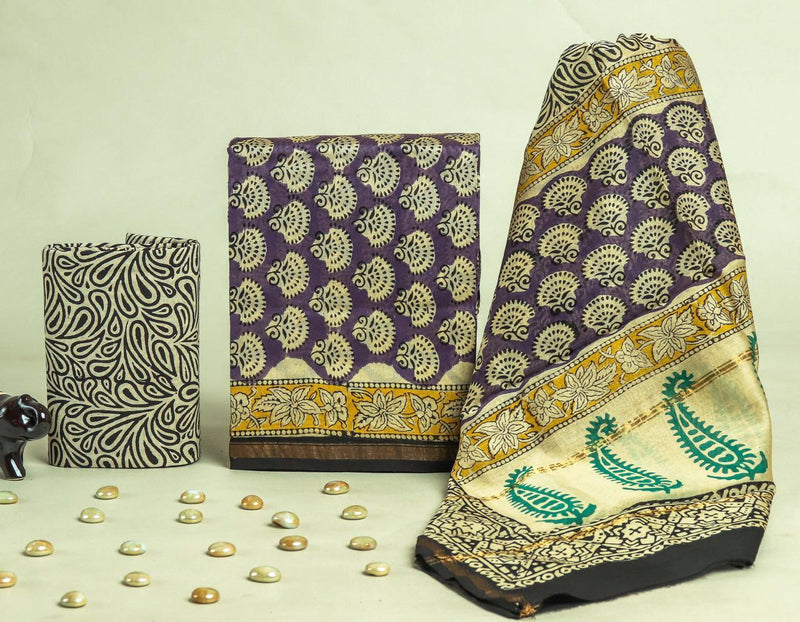 Designer Hand Block Print Chanderi Silk Suit set with Premium Chanderi Dupatta (CHDYS06)