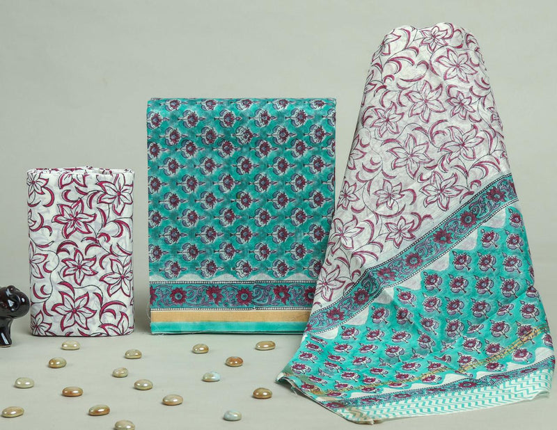 Designer Hand Block Print Suit Material with Kota Doria Dupatta (3CKDYS151)