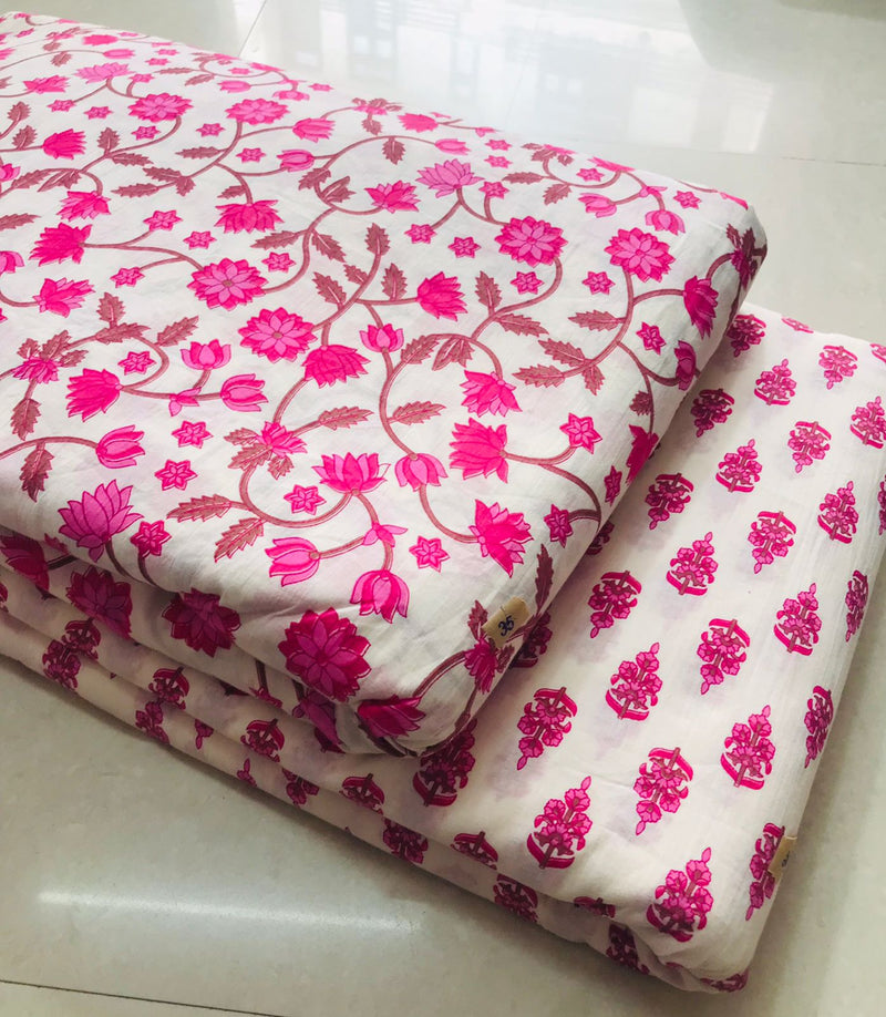 Traditional Hand block print Cotton top and bottom set (2PCYS24)