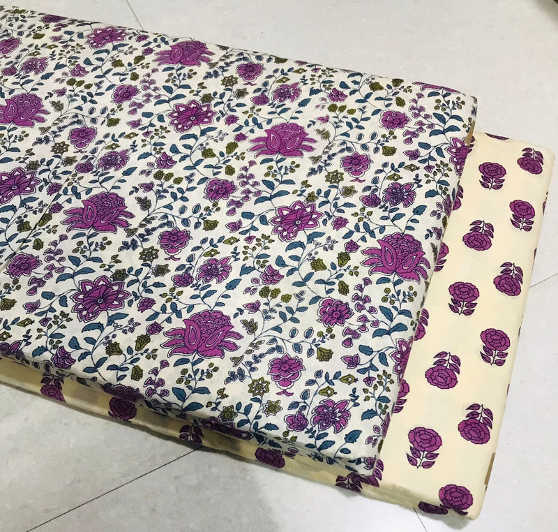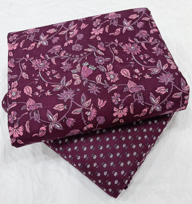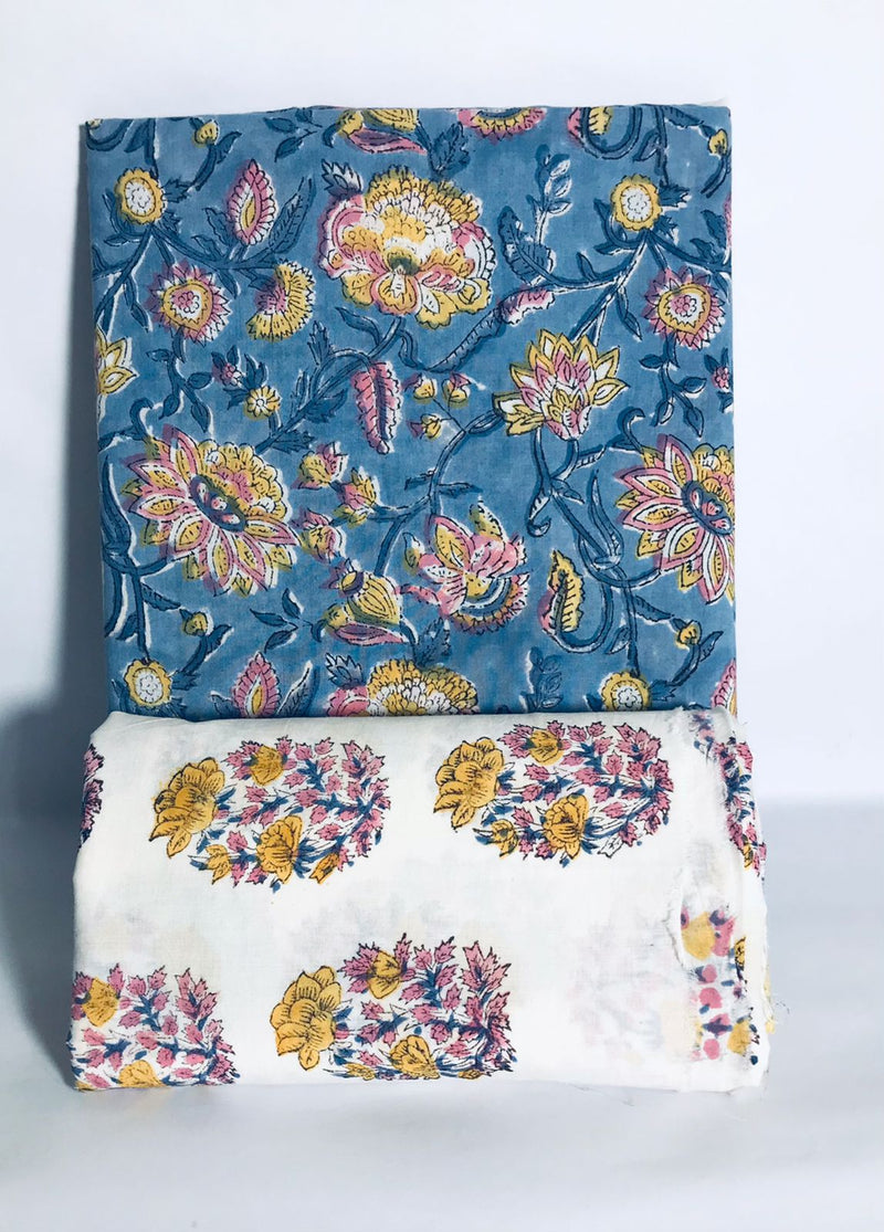 Traditional Hand block print Cotton top and bottom set (2PCYS45)