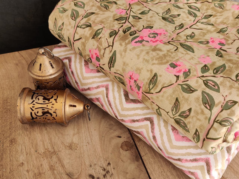 Traditional Hand block print Cotton top and bottom set (2PCYS38)
