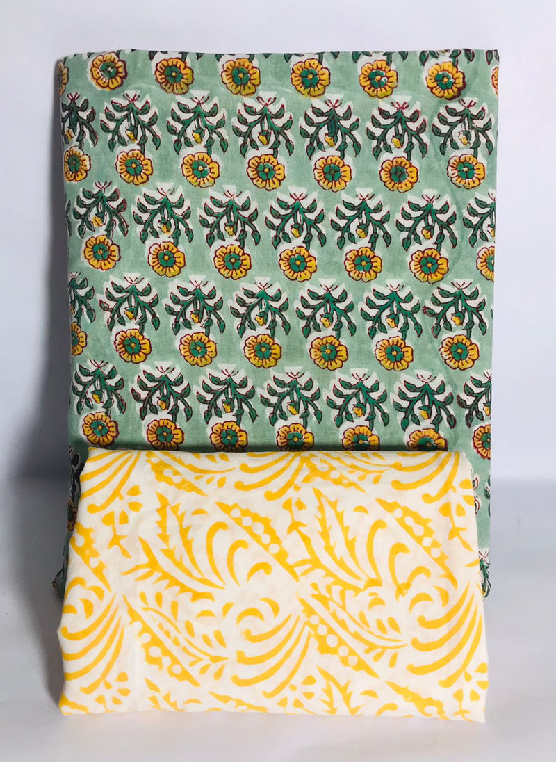 Traditional Hand block print Cotton top and bottom set (2PCYS34)