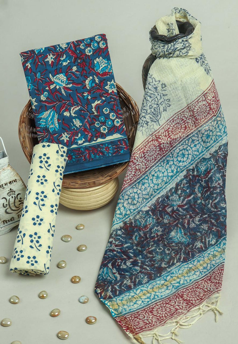 TRADITIONAL HAND HAND BLOCK PURE COTTON SUIT WITH KOTA DORIA DUPATTA (3CKDYS234)