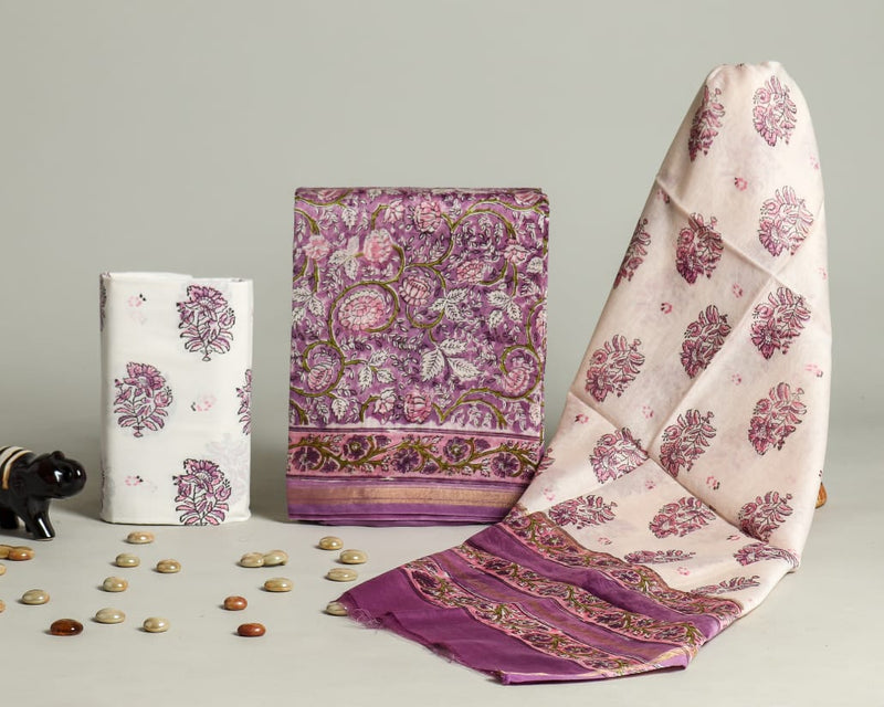 YUVI STYLE HAND BLOCK CHANDERI SILK SUIT SET WITH CHANDERI DUPATTA (CHDYS180)
