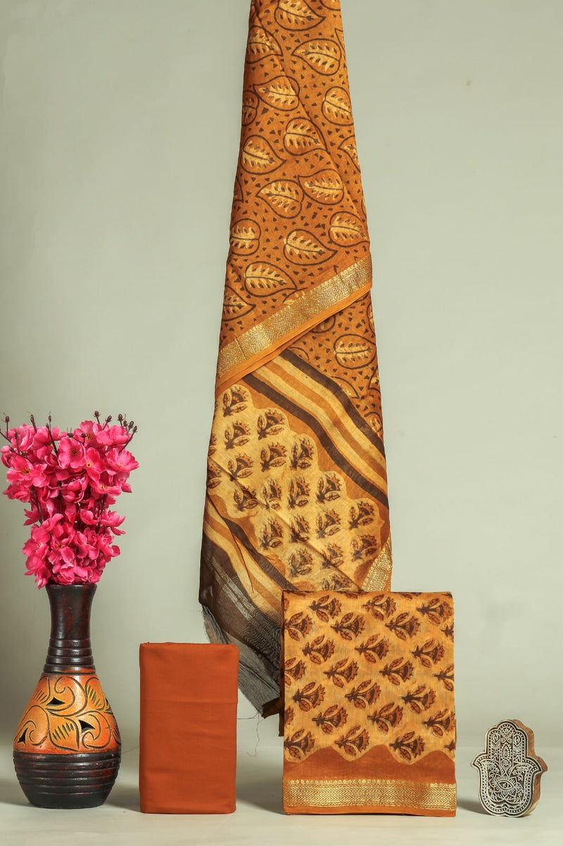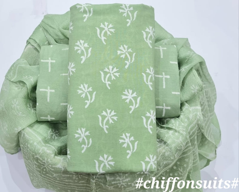 Yuvi Style HAND BLOCK PRINT PURE COTTON SUIT WITH CHIFFION DUPTTA (PCHFYS70)