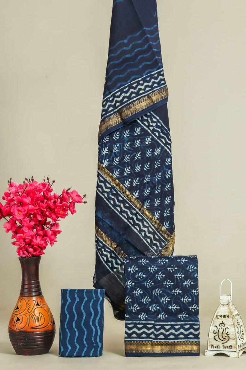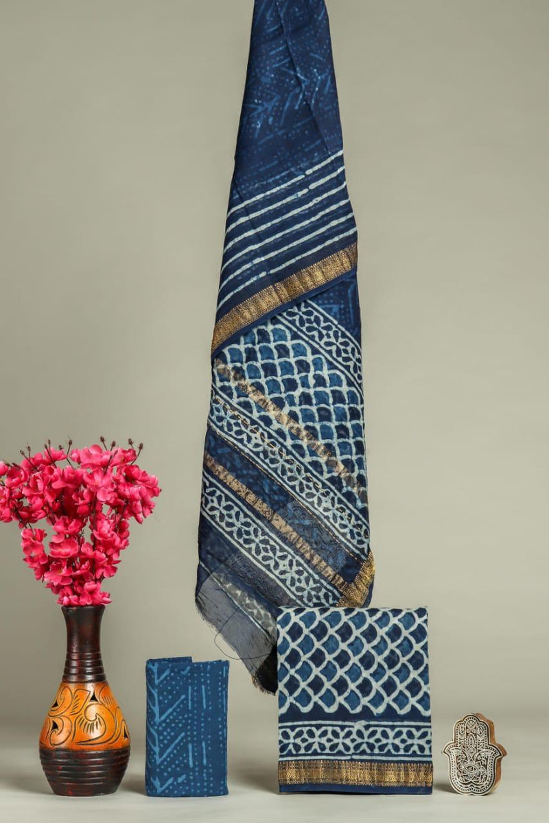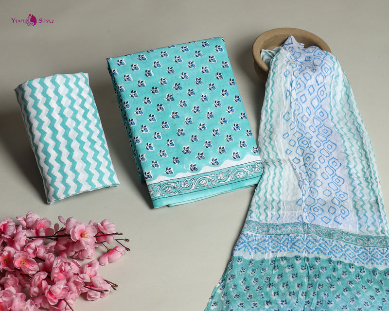YUVI STYLE HAND BLOCK LEHERIYA PRINT COTTON SUIT SET (MALYS284)
