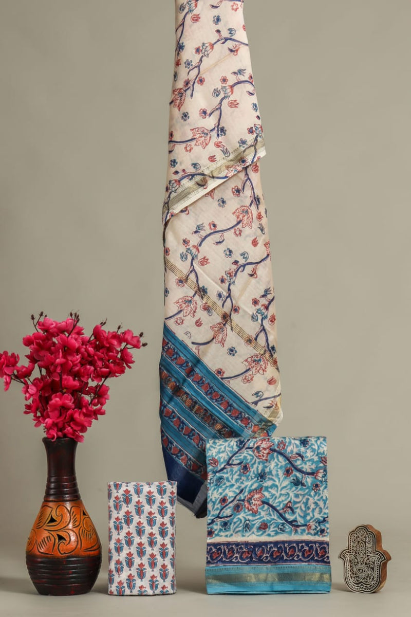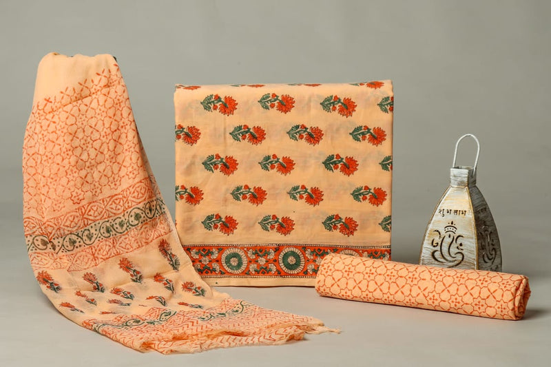 YUVI STYLE HAND BLOCK PRINT PURE COTTON SUIT WITH CHIFFION DUPTTA (PCHFYS123)