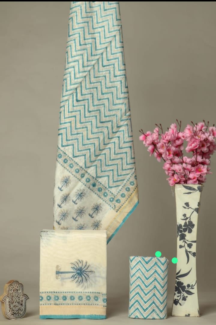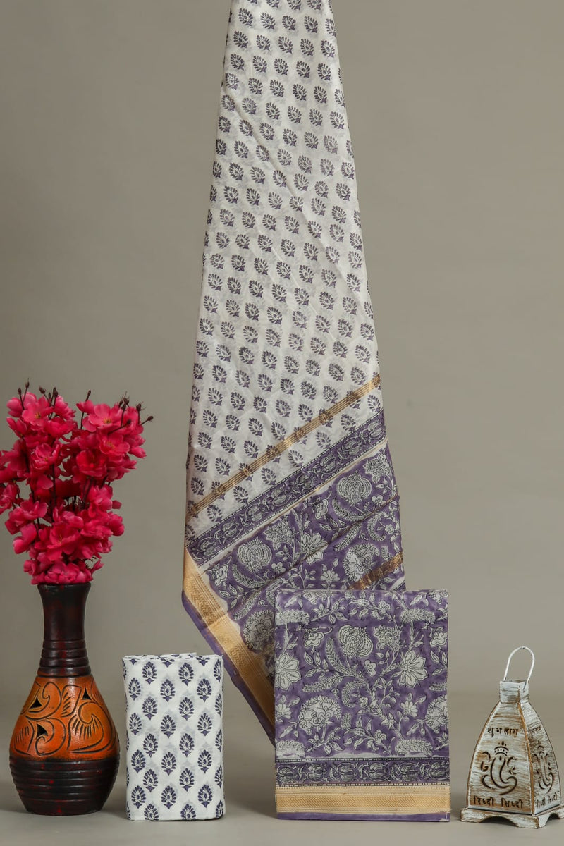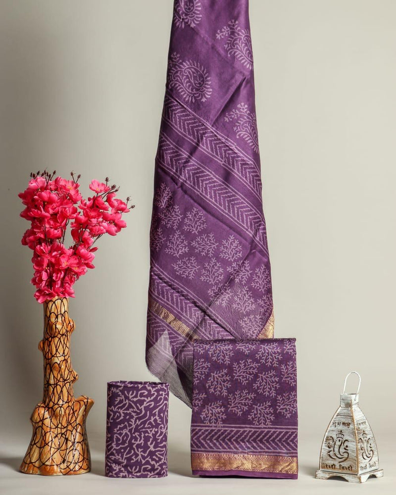 YUVI STYLE HAND BLOCK CHANDERI SILK SUIT SET WITH CHANDERI DUPATTA (CHDYS258)