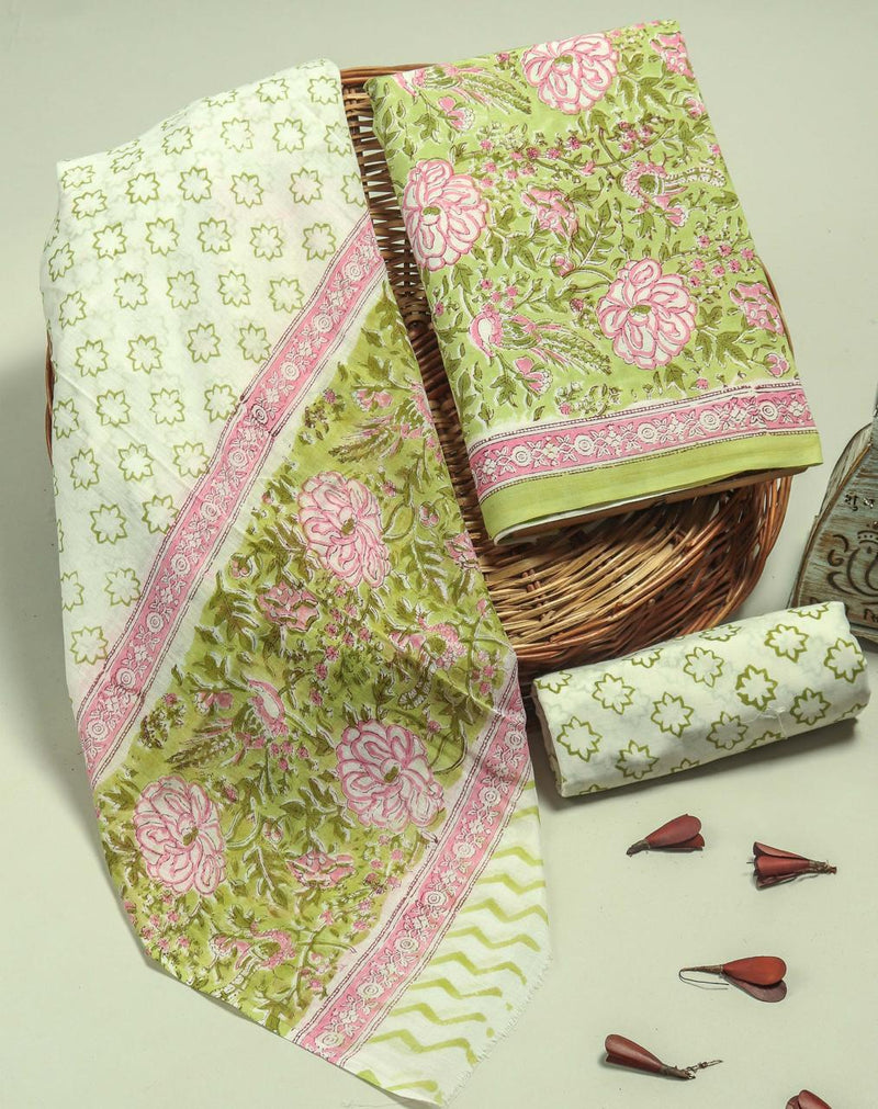 YUVI STYLE HAND BLOCK PRINT PURE COTTON SUIT WITH CHIFFION DUPTTA (PCHFYS120)