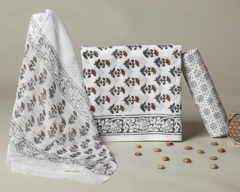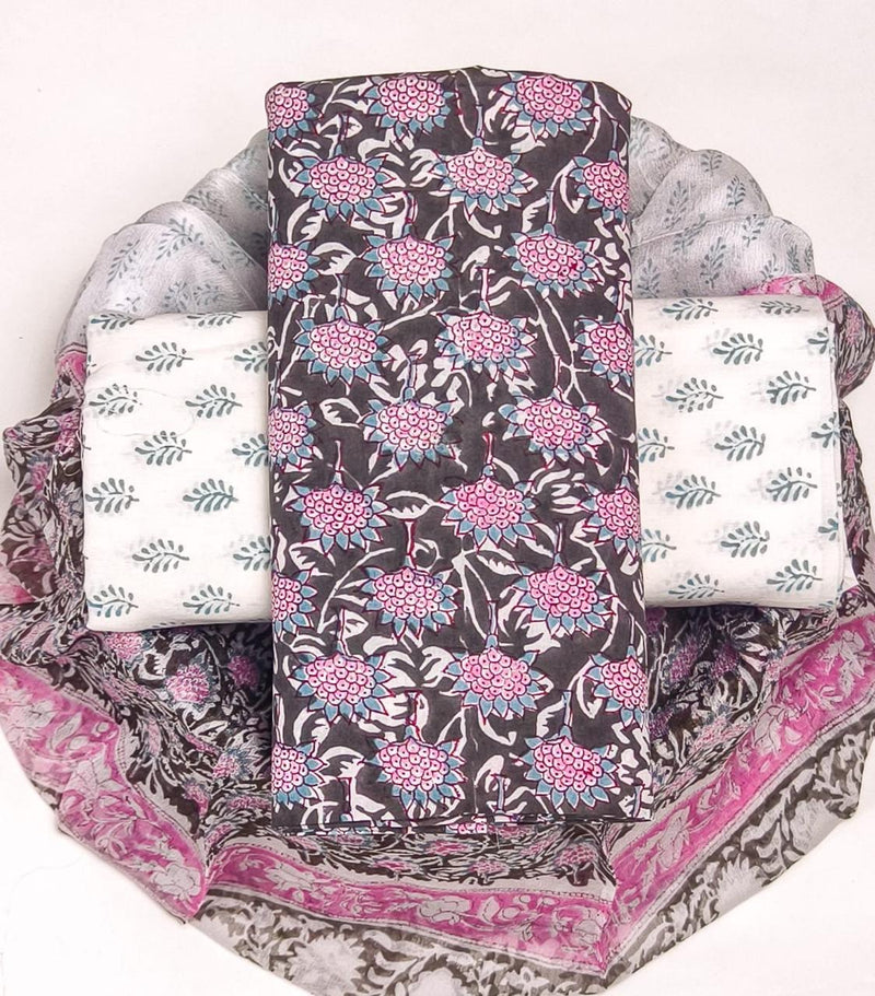 YUVI STYLE HAND BLOCK PRINT PURE COTTON SUIT WITH CHIFFION DUPTTA (PCHFYS149)