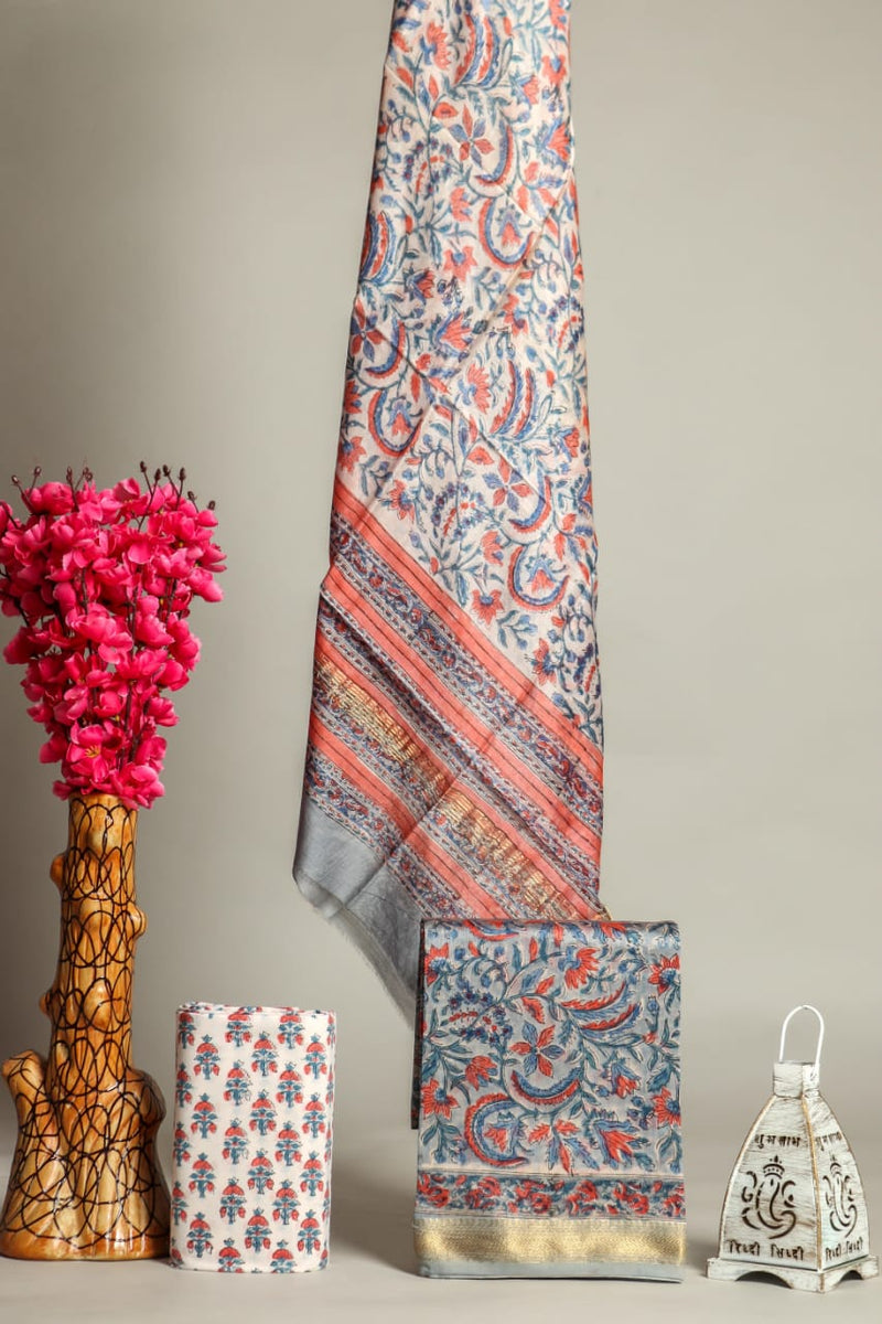 YUVI STYLE HAND BLOCK PRINT MAHESHWARI SILK SUIT WITH MAHESHWARI SILK DUPATTA (MSLYS120)