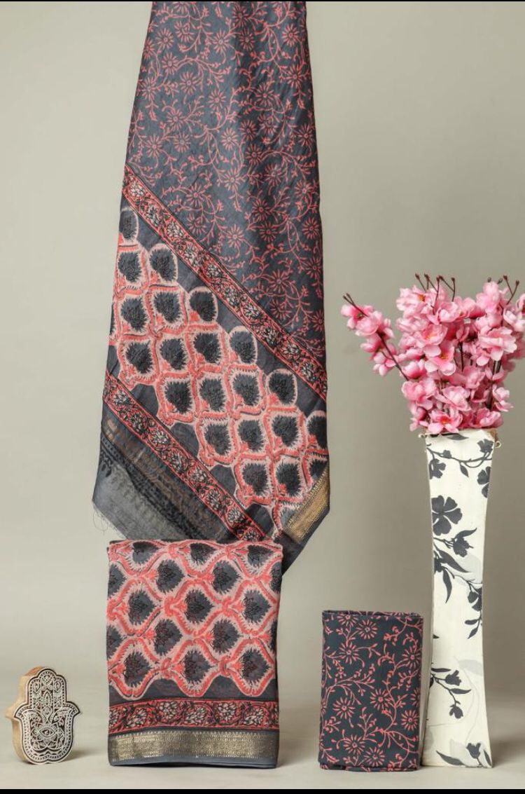 YUVI STYLE HAND BLOCK PRINT MAHESHWARI SILK SUIT WITH MAHESHWARI SILK DUPATTA (MSLYS106)