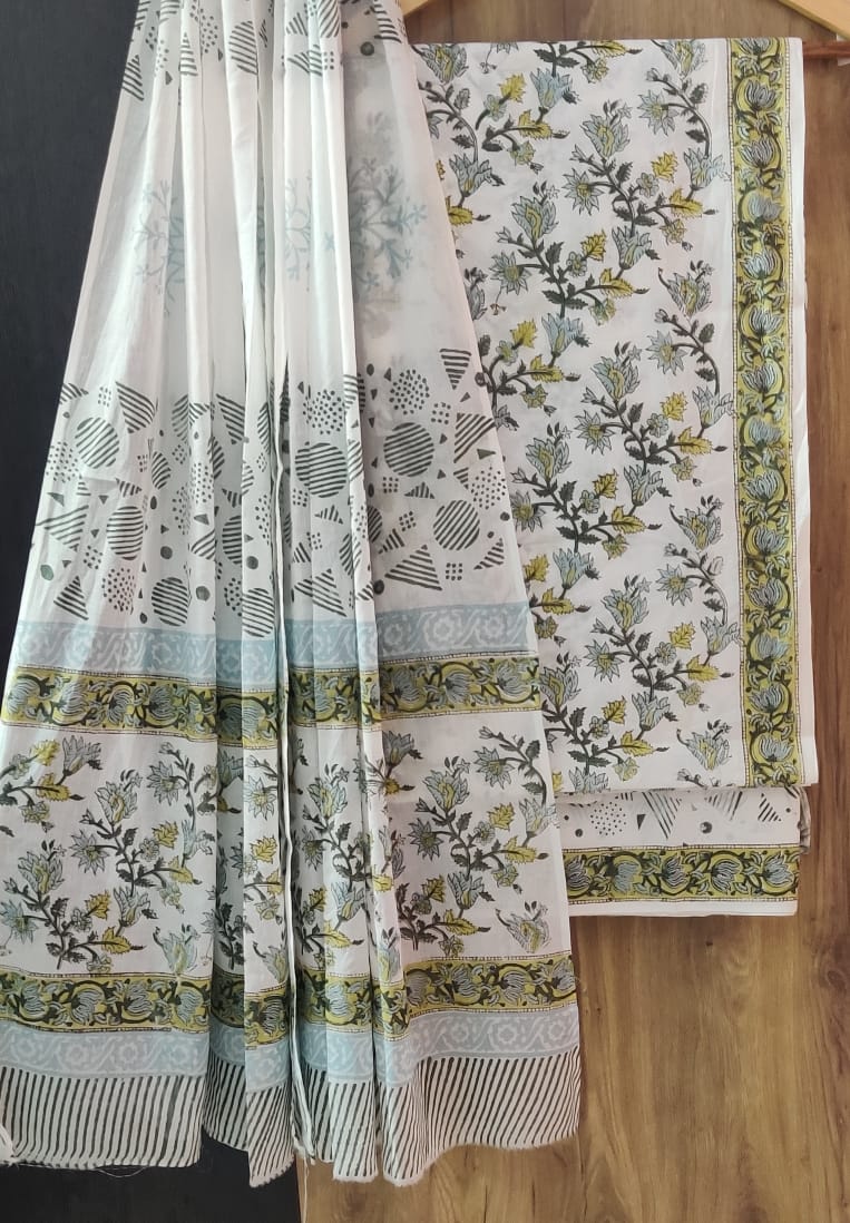 YUVI STYLE HAND BLOCK PRINT PURE COTTON SUIT WITH COTTO MULMUL DUPATTA (MALYS247)