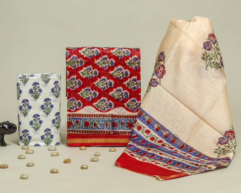 YUVI STYLE HAND PRINTED CHANDERI SILK SUIT SET WITH CHANDERI DUPATTA (CHDYS229)