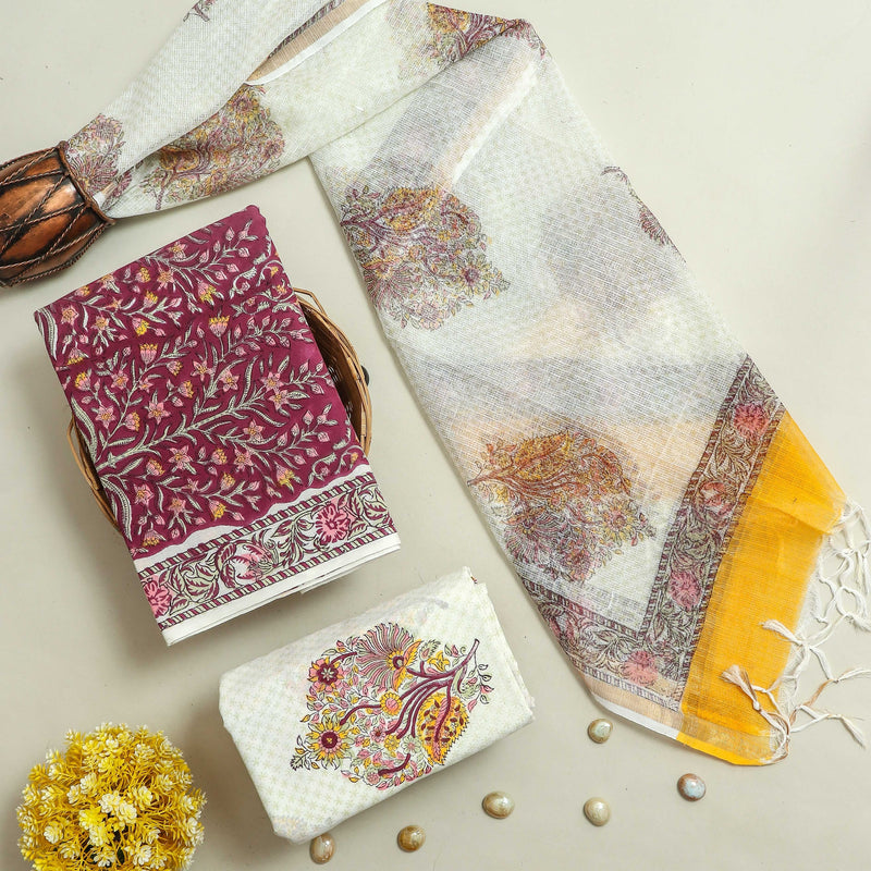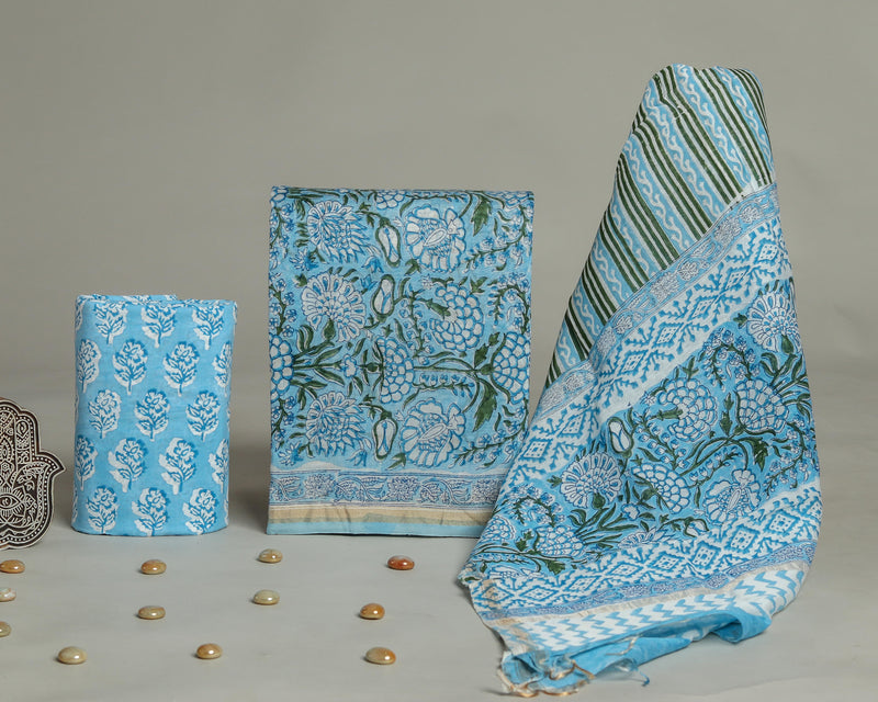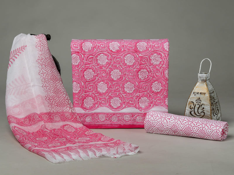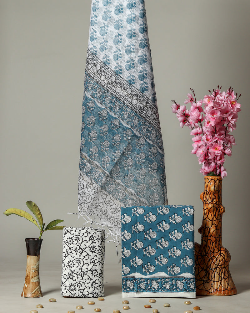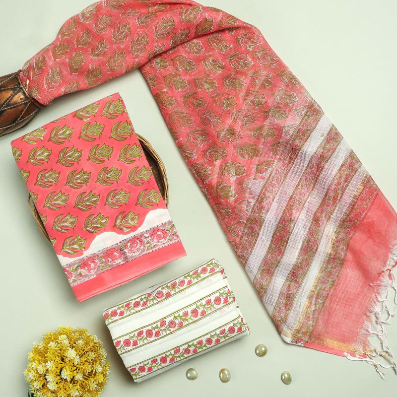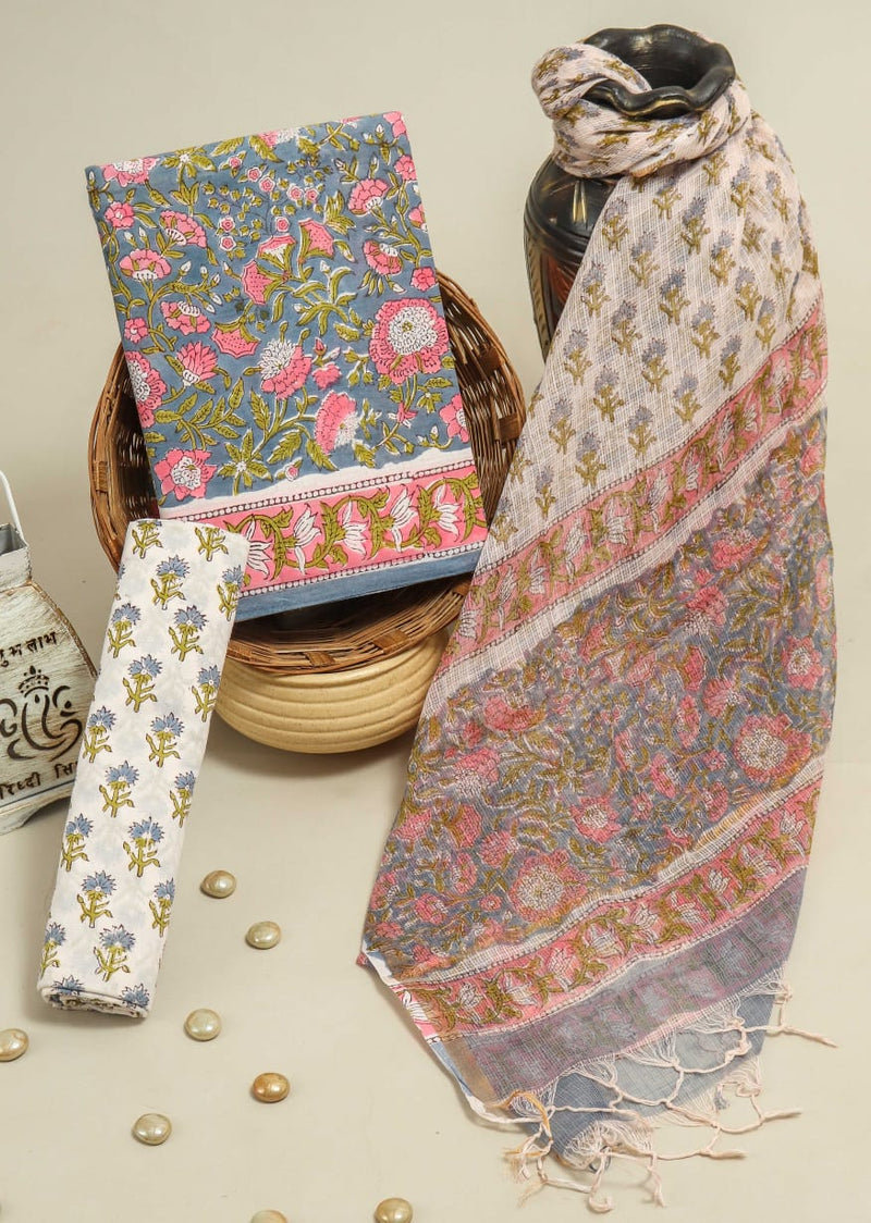 YUVI STYLE HAND BLOCK PURE COTTON SUIT WITH KOTA DORIA DUPATTA (3CKDYS168)