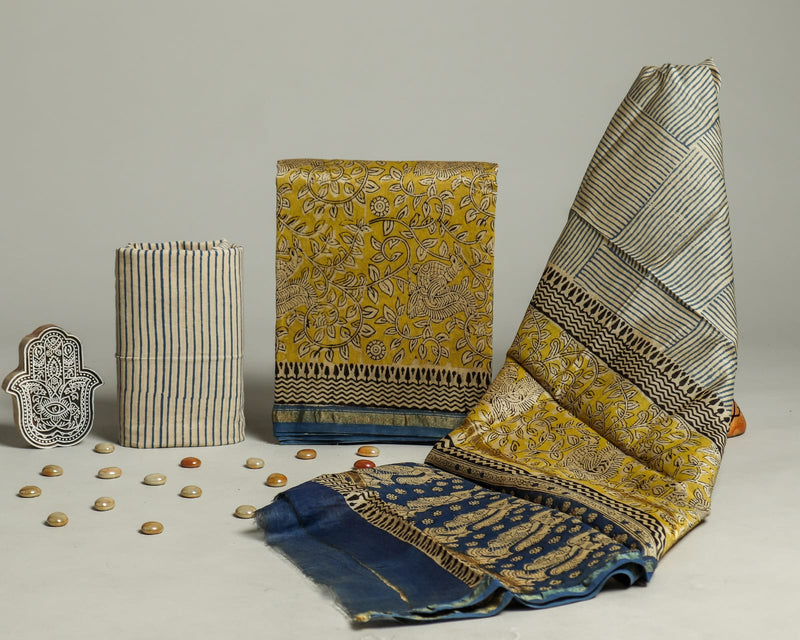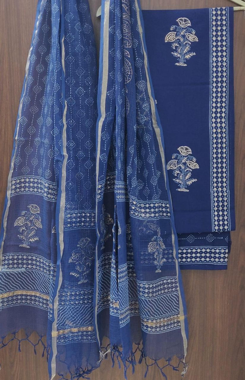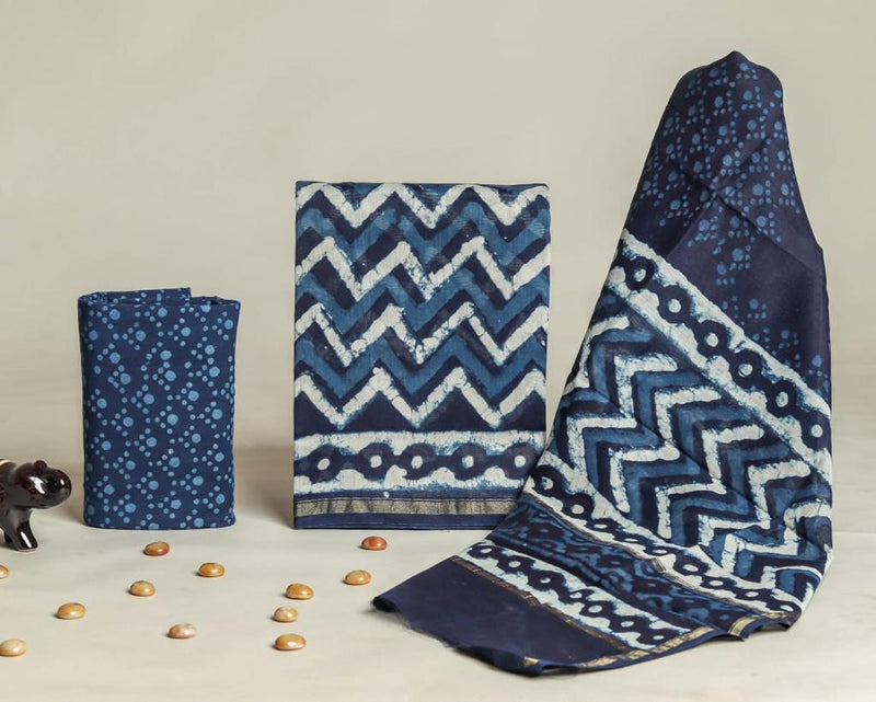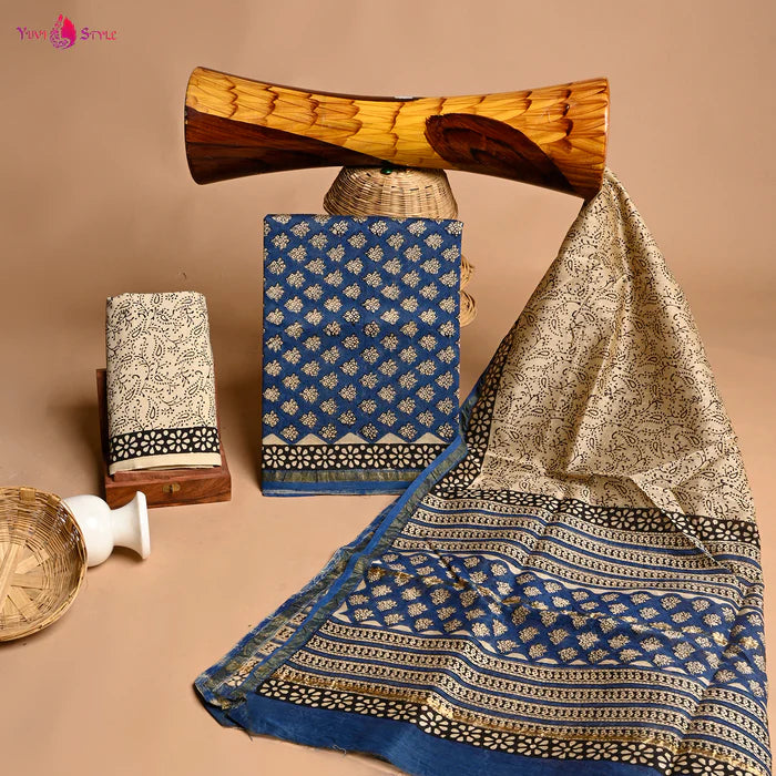 YUVI STYLE INDIGO HAND BLOCK PRINT MAHESHWARI SILK SUIT WITH MAHESHWARI SILK DUPATTA (MSLYS123)