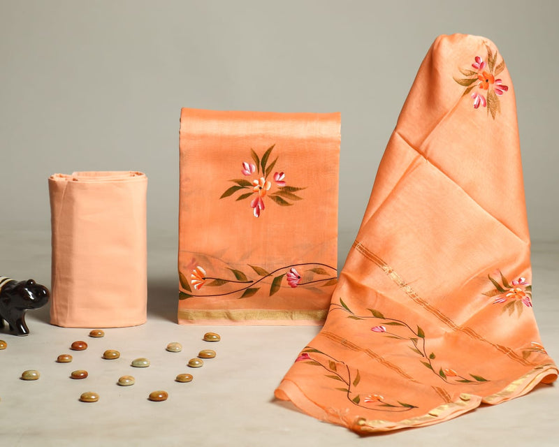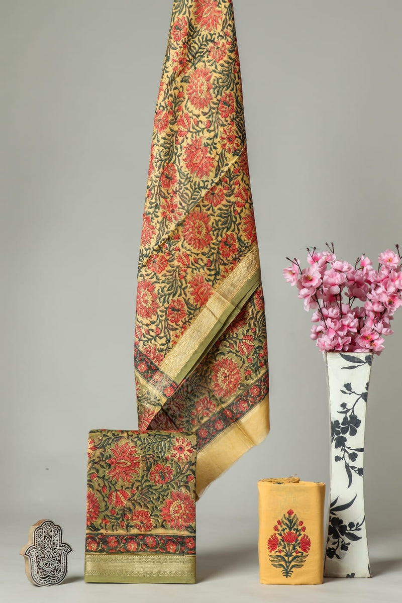 YUVI STYLE HAND PRINTED CHANDERI SILK SUIT SET WITH CHANDERI DUPATTA (CHDYS224)