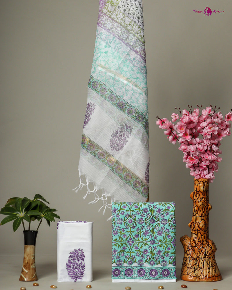 YUVI STYLE HAND BLOCK PURE COTTON SUIT WITH KOTA DORIA DUPATTA (3CKDYS171)