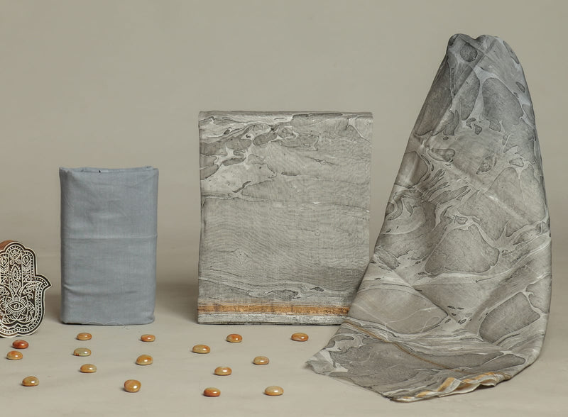 Yuvi Style Marble Texture Print Chanderi Silk Suit With Chadneri Silk Duppta (CHDYS251)