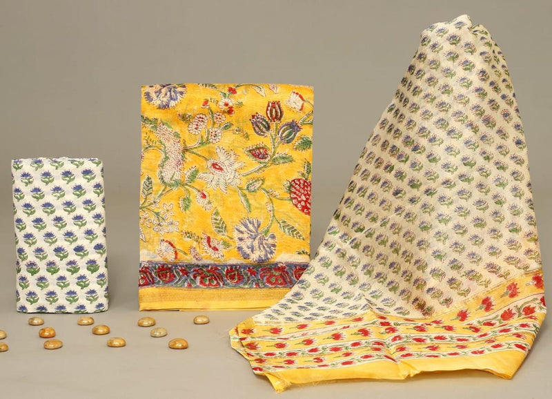 DESIGNER HAND BLOCK PRINT CHANDERI SILK SUIT SET WITH PREMIUM CHANDERI DUPATTA (CHDYS42)