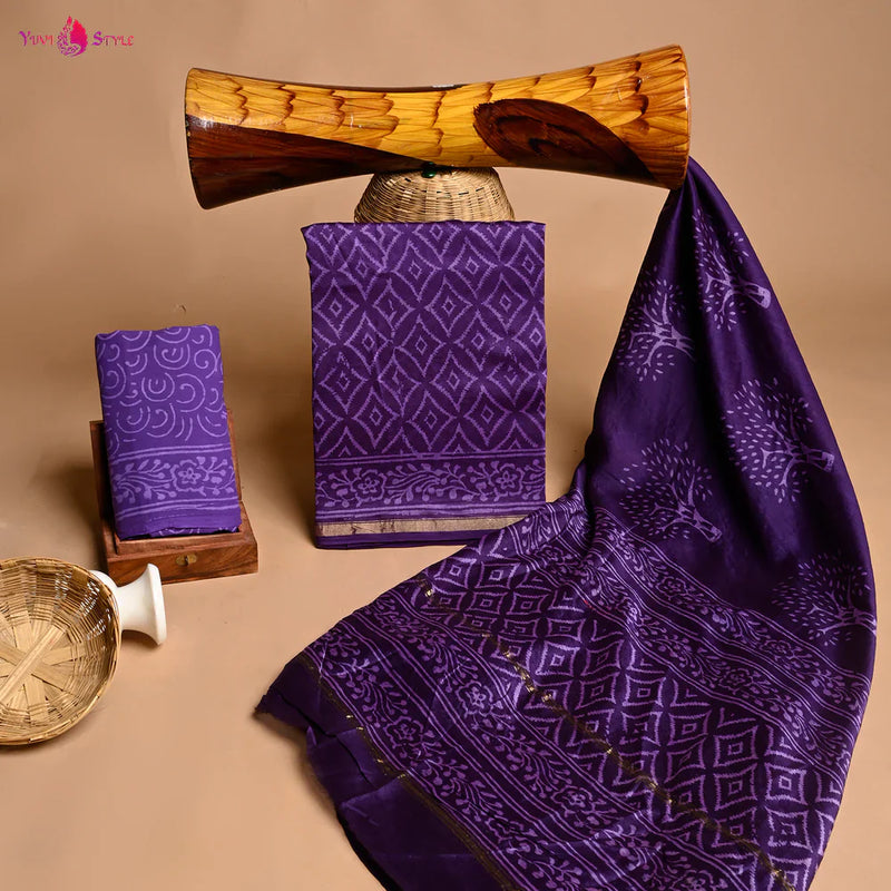 Designer Hand Block Print Chanderi Silk Suit set with Premium Chanderi Dupatta (CHDYS30)