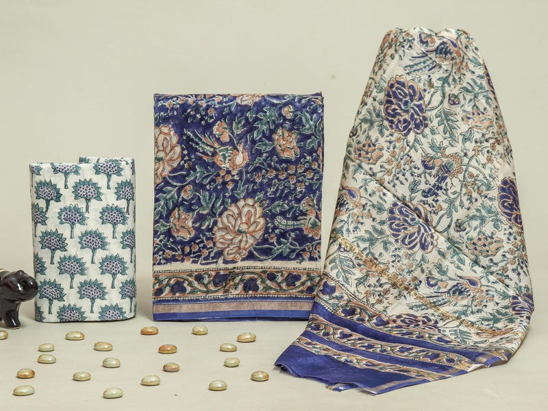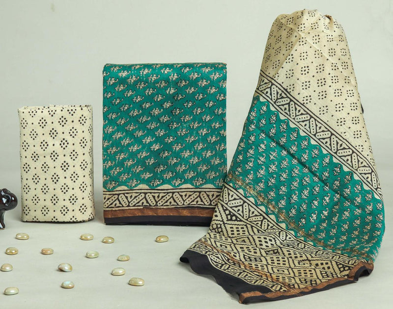 DESIGNER HAND BLOCK PRINT CHANDERI SILK SUIT SET WITH PREMIUM CHANDERI DUPATTA (CHDYS44)
