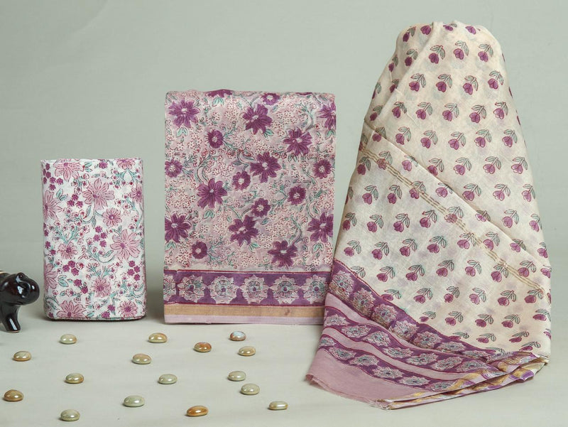 DESIGNER HAND BLOCK PRINT CHANDERI SILK SUIT SET WITH PREMIUM CHANDERI DUPATTA (CHDYS40)