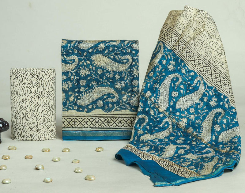 DESIGNER HAND BLOCK PRINT CHANDERI SILK SUIT WITH PREMIUM CHANDERI DUPATTA (CHDYS301)