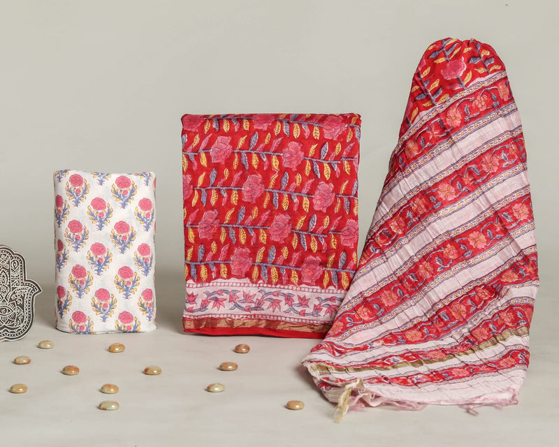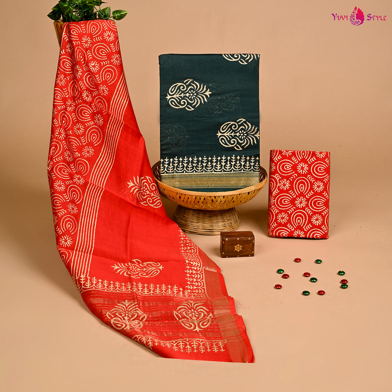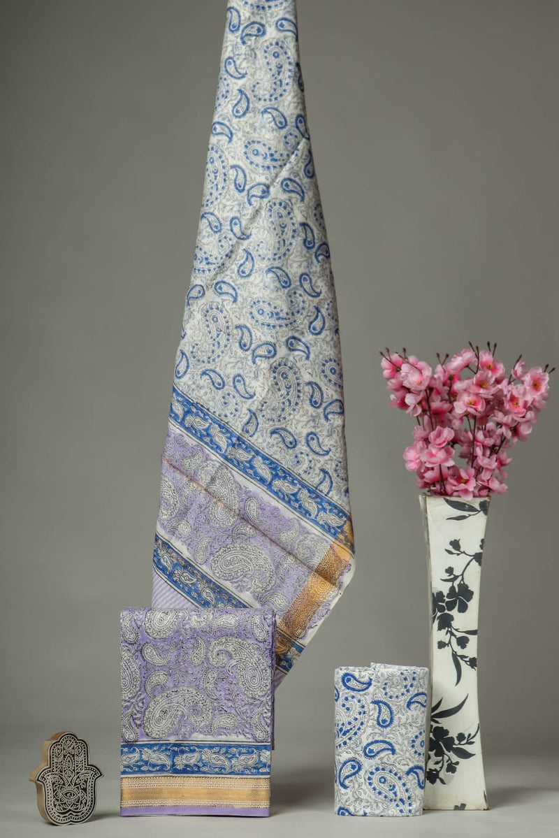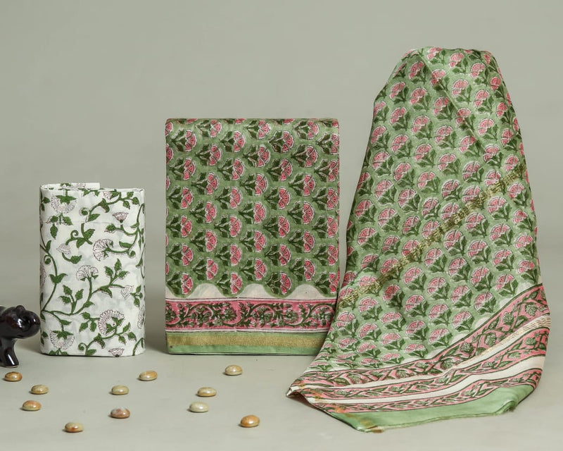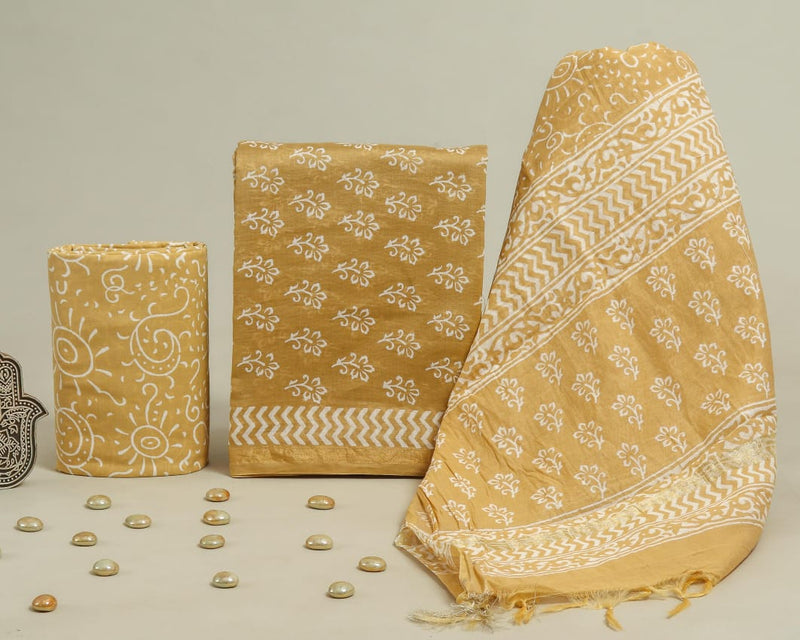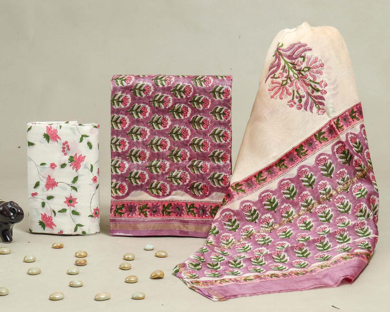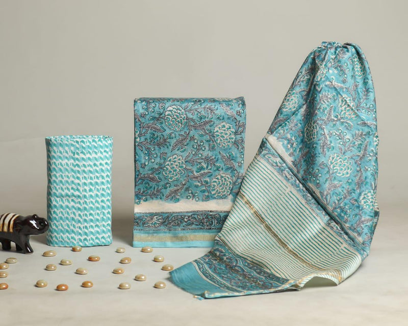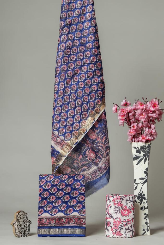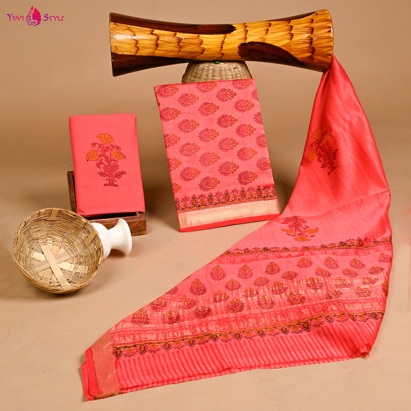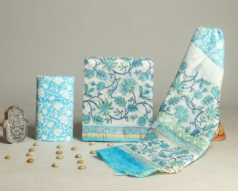 Save 43%DESIGNER HAND BLOCK PRINT CHANDERI SILK SUIT WITH PREMIUM CHANDERI DUPATTA (CHDYS305)
