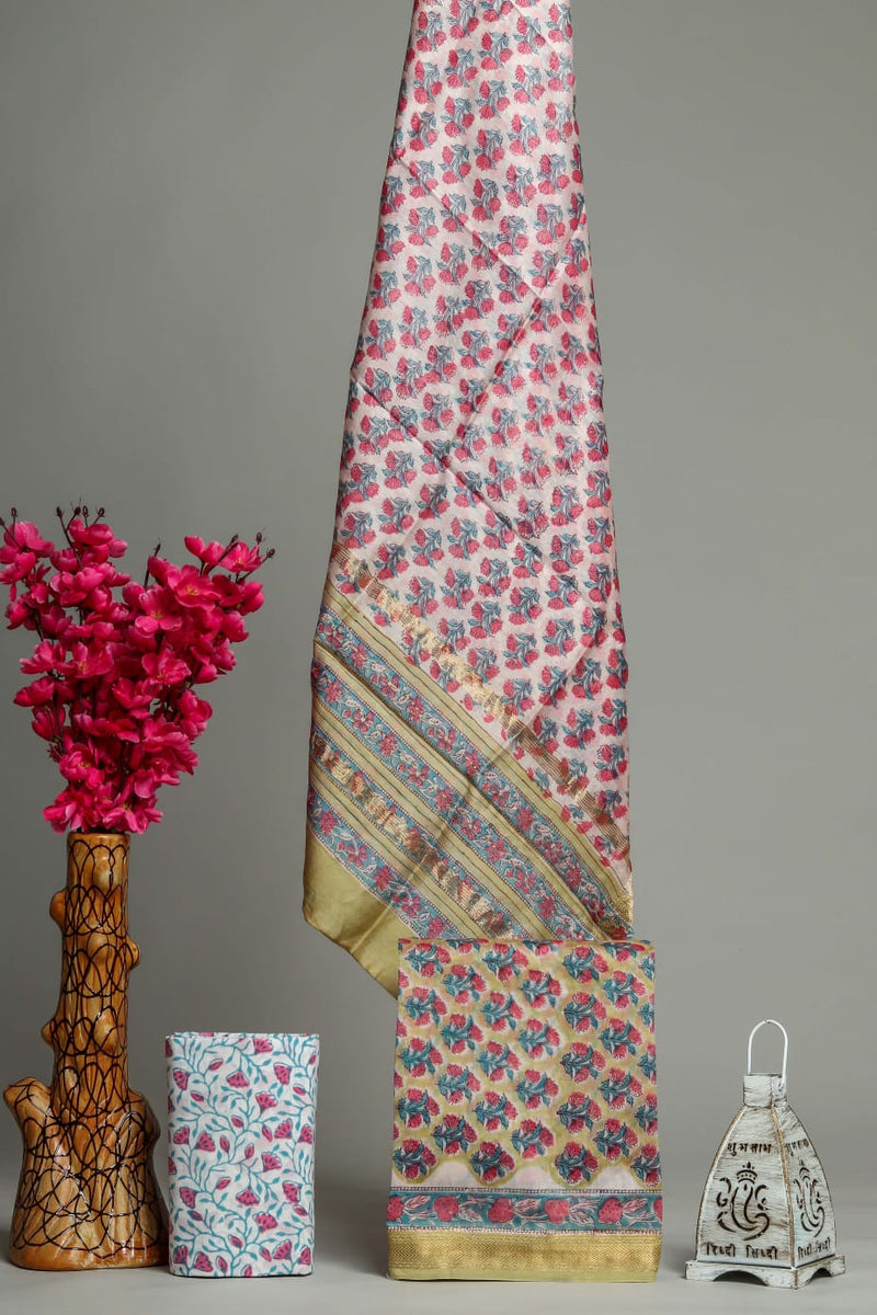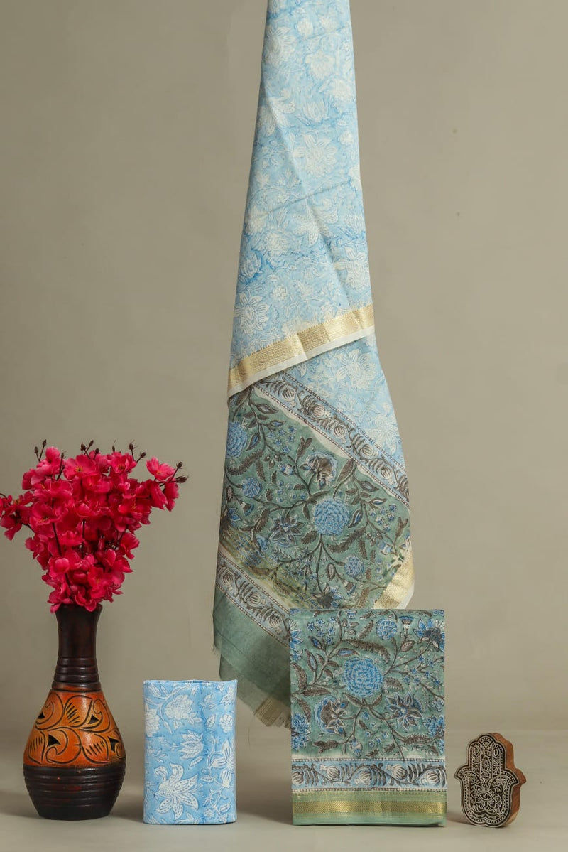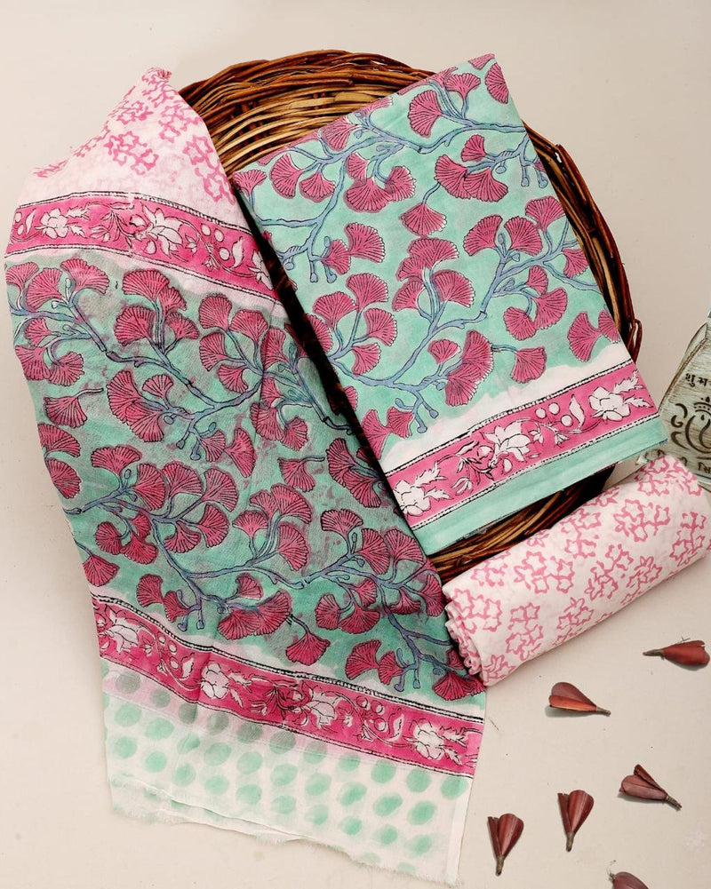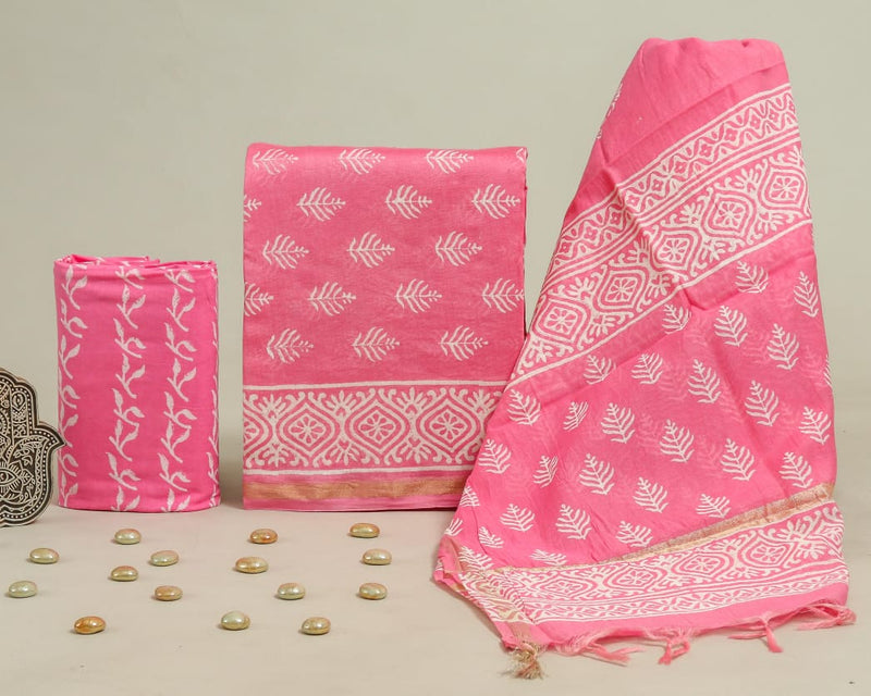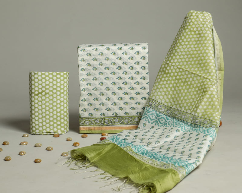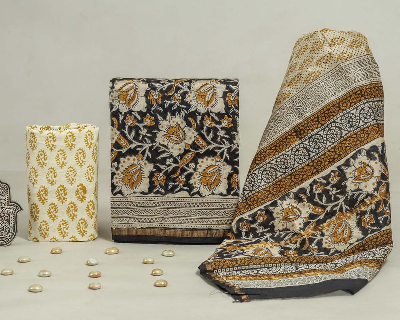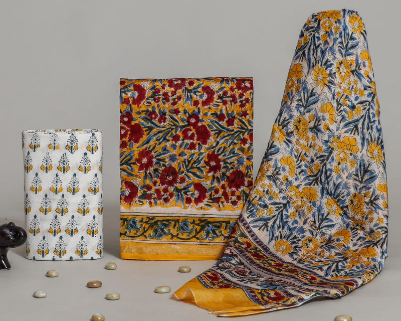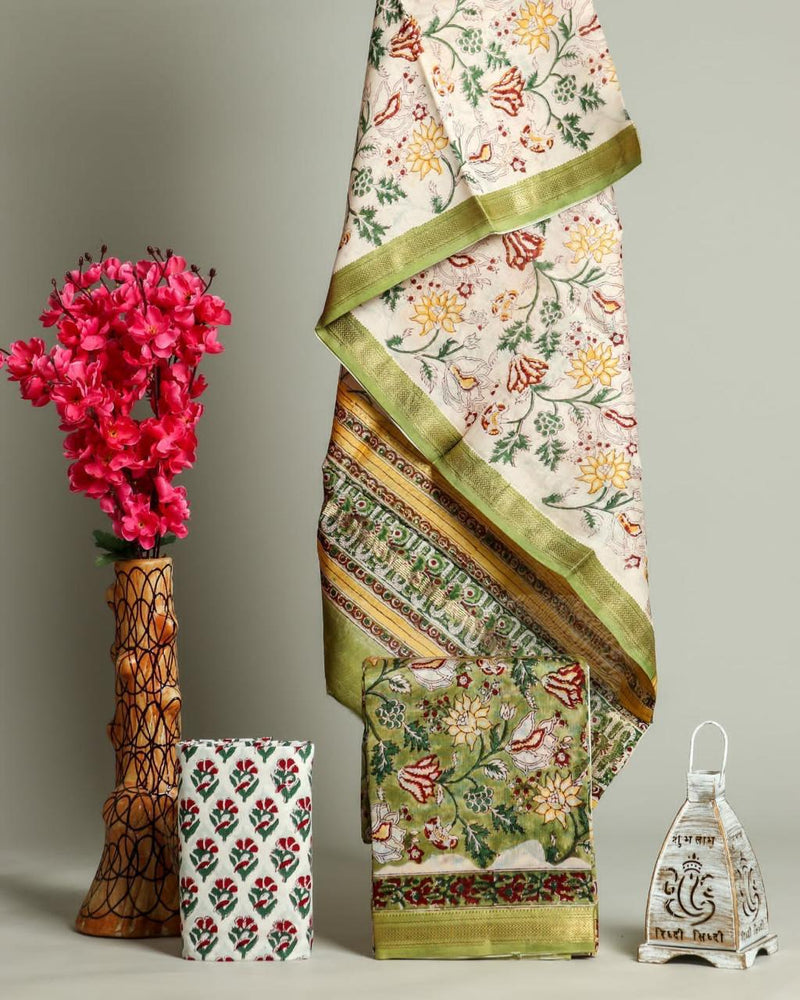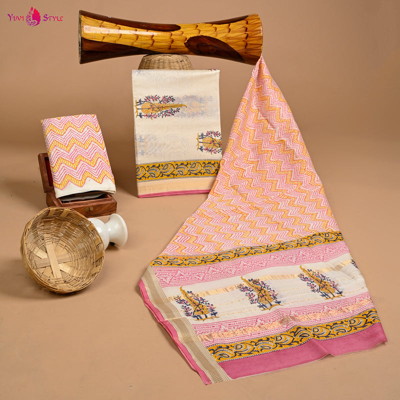 Save 43%DESIGNER HAND BLOCK PRINT CHANDERI SILK SUIT WITH PREMIUM CHANDERI DUPATTA (CHDYS305)