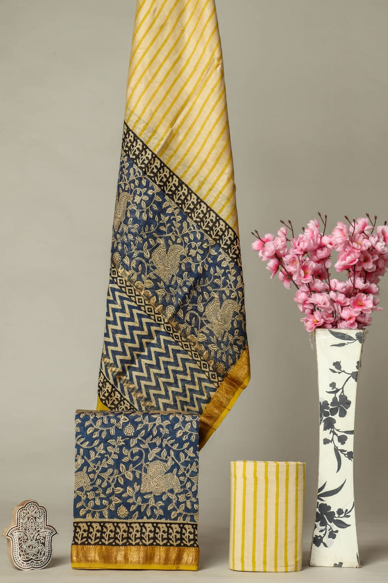 Designer Hand Block Print Maheshwari Silk Suit Set (MSLYS17) Sale priceRs. 2,799.00 Regular priceRs. 4,999.00