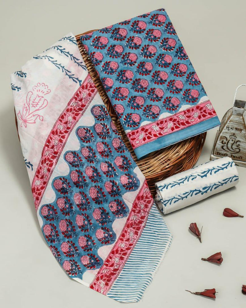 DESIGNER HAND BLOCK PRINT COTTON SUIT SET WITH MULMUL DUPATTA (MALYS320) Sale priceRs. 1,699.00 Regular priceRs. 3,399.00