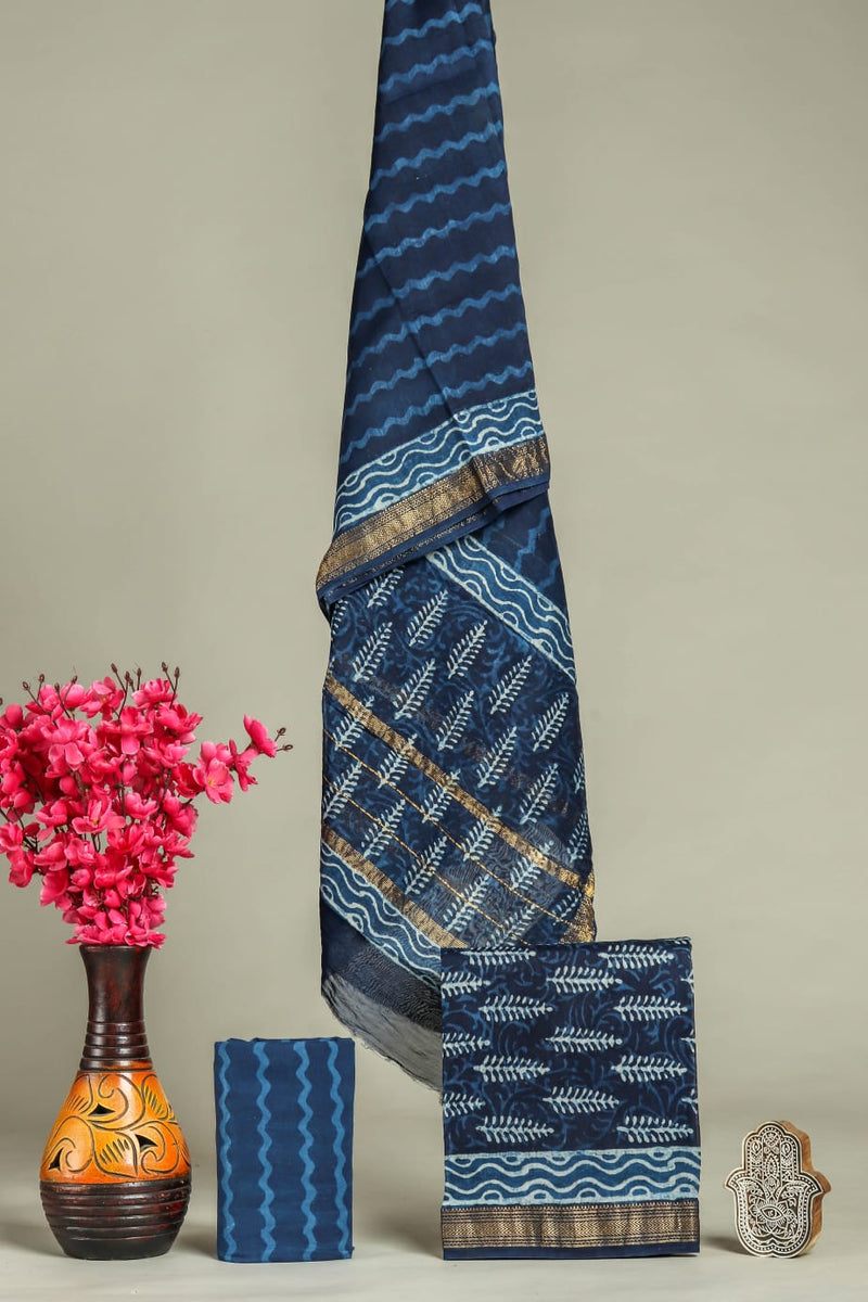 DESIGNER HAND BLOCK PRINT MAHESHWARI SILK SUIT SET (MSLYS148)