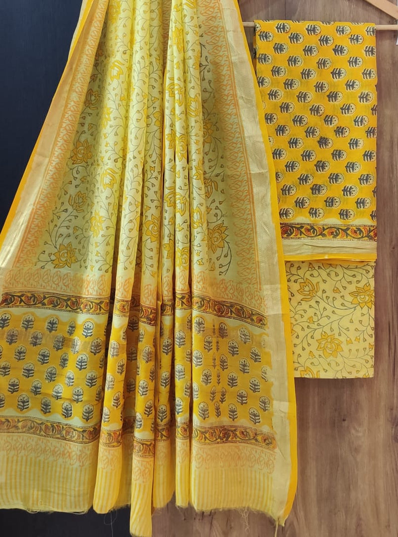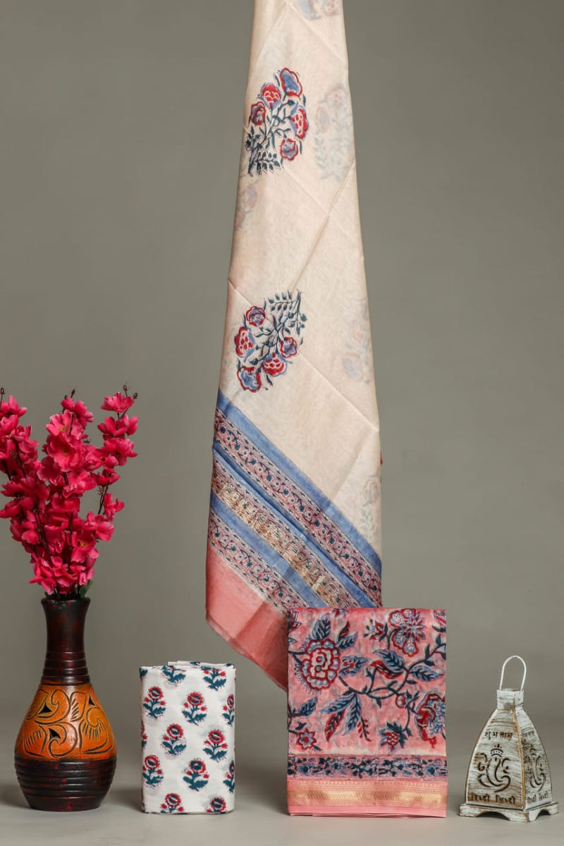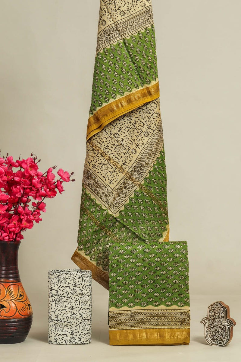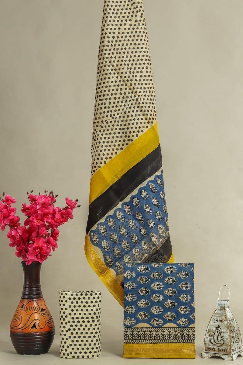Designer Hand Block Print Maheshwari Silk Suit Set (MSLYS30)