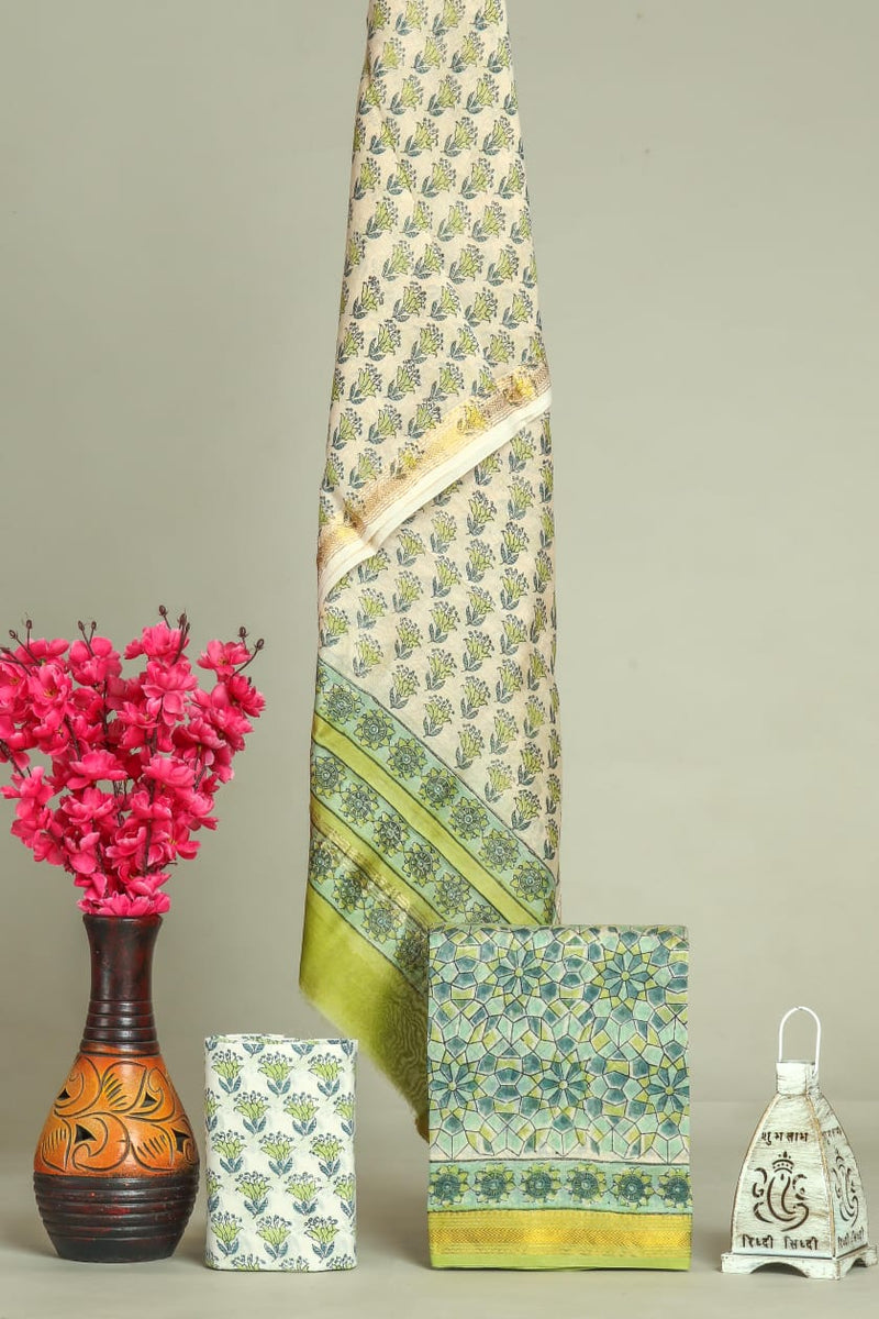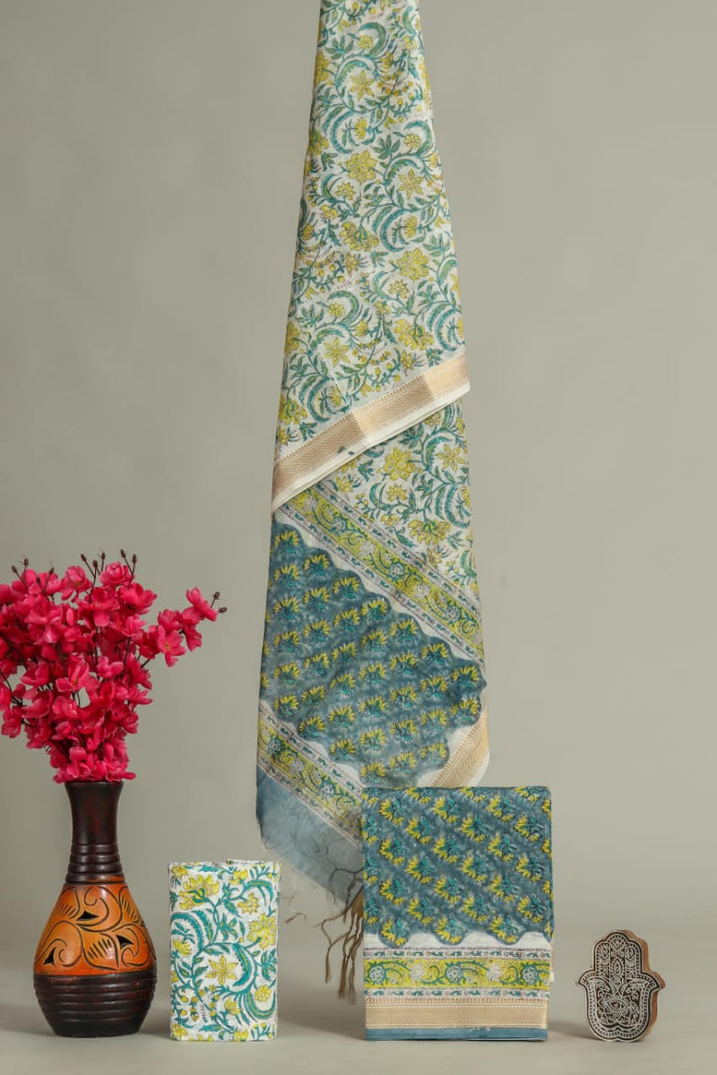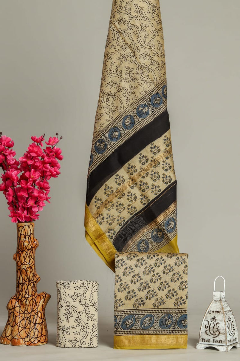 Designer Hand Block Print Maheshwari Silk Suit Set (MSLYS15)