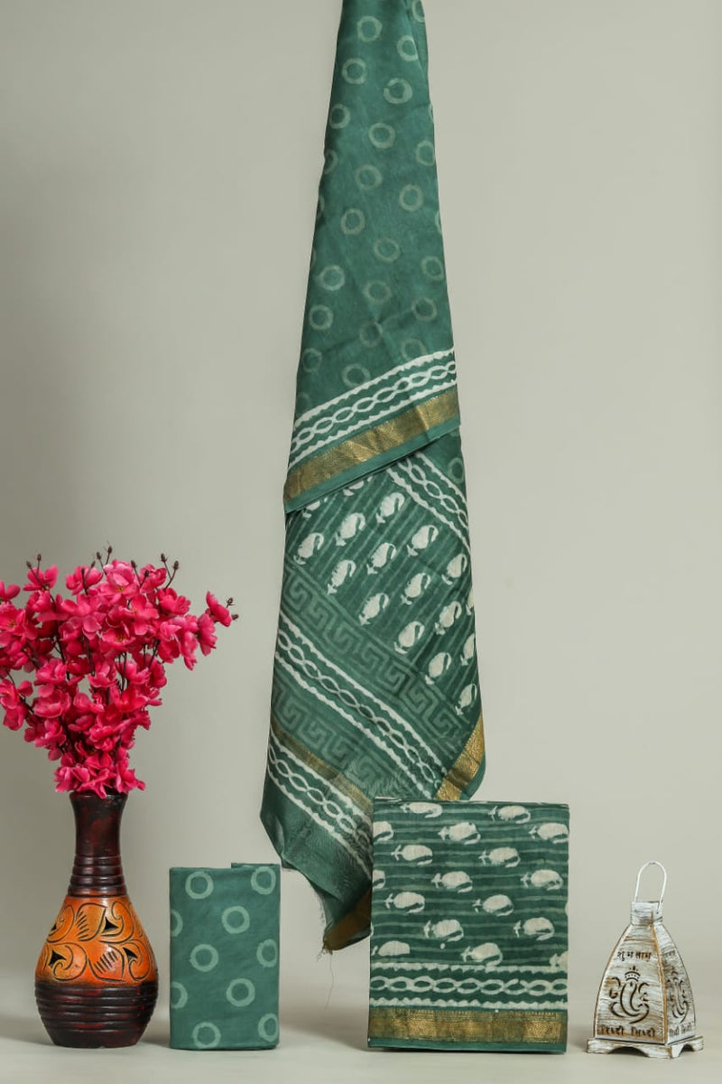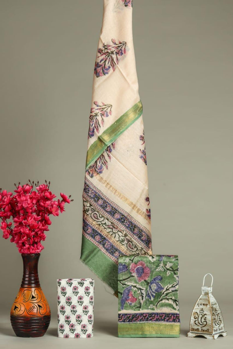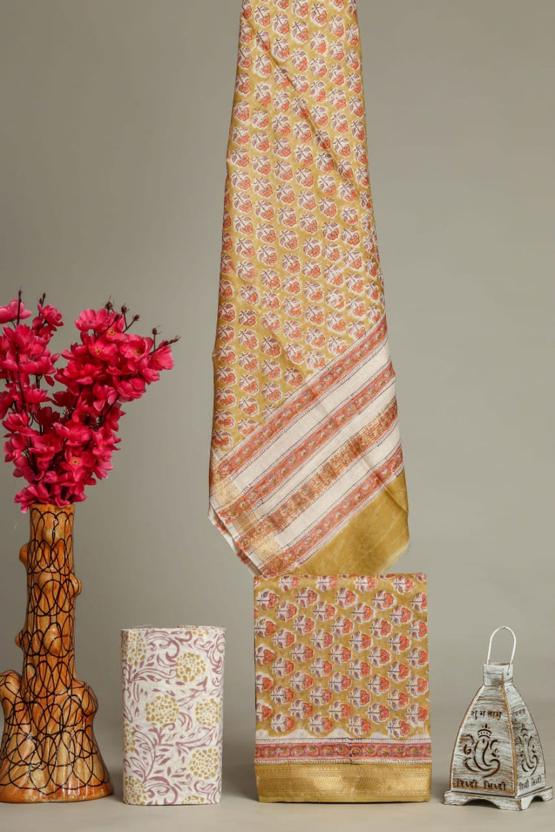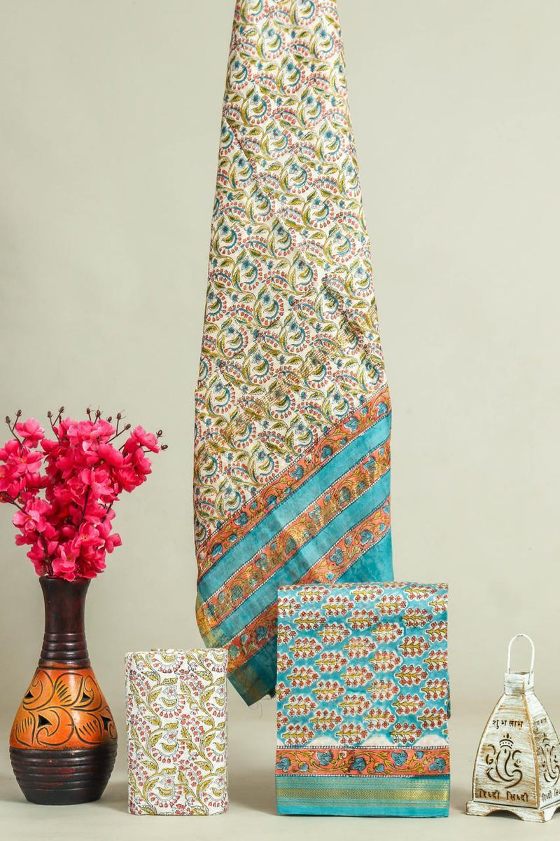 Designer Hand Block Print Maheshwari Silk Suit Set (MSLYS15)
