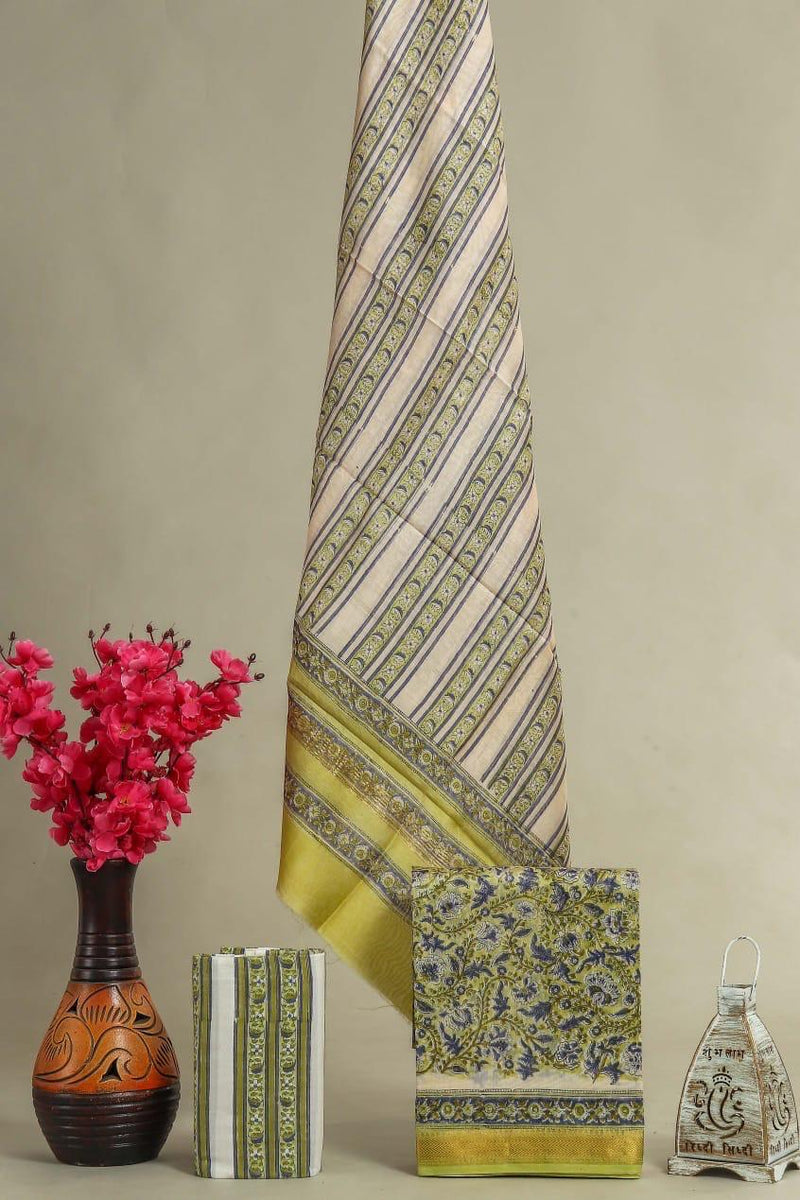 Designer Hand Block Print Maheshwari Silk Suit Set (MSLYS16)