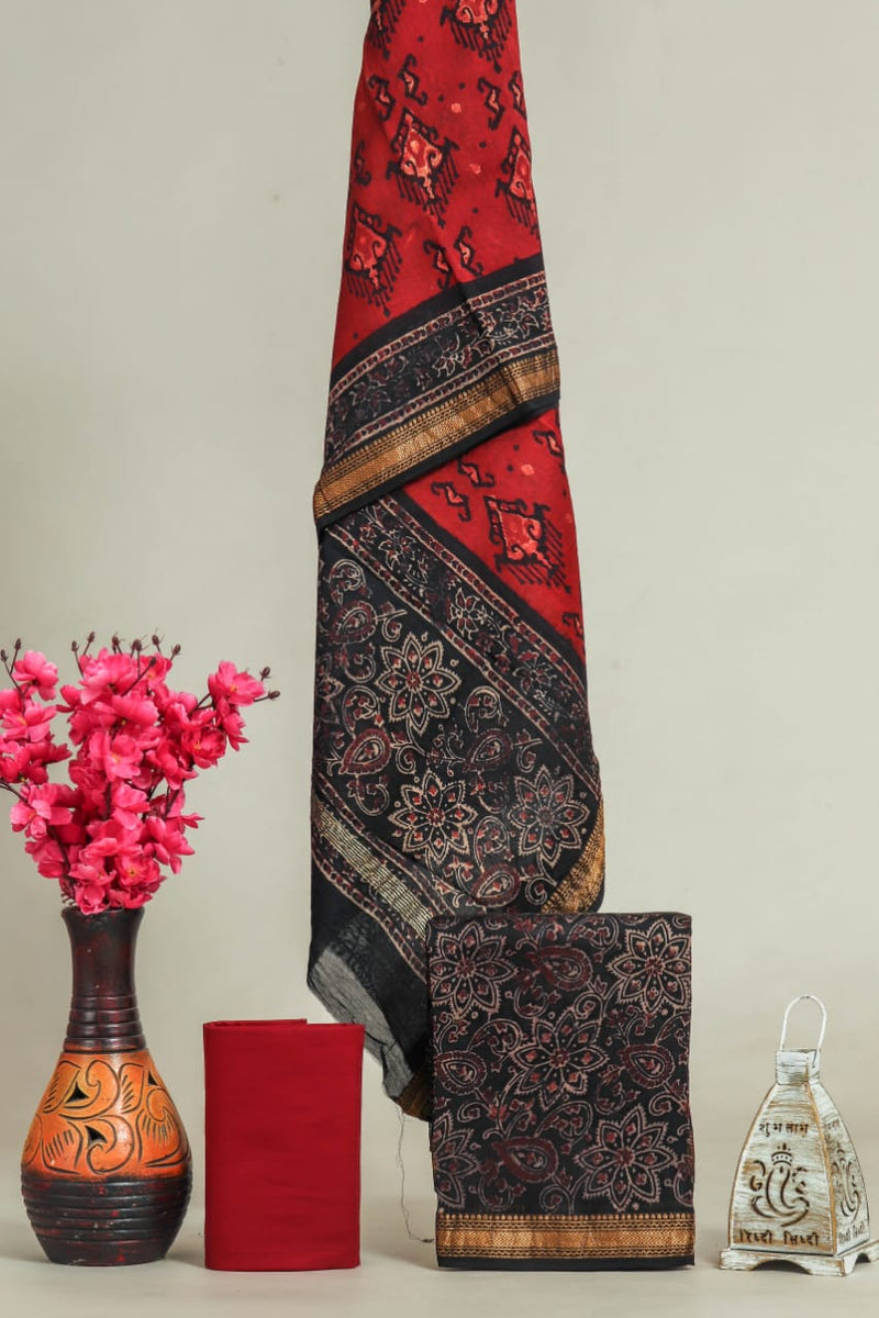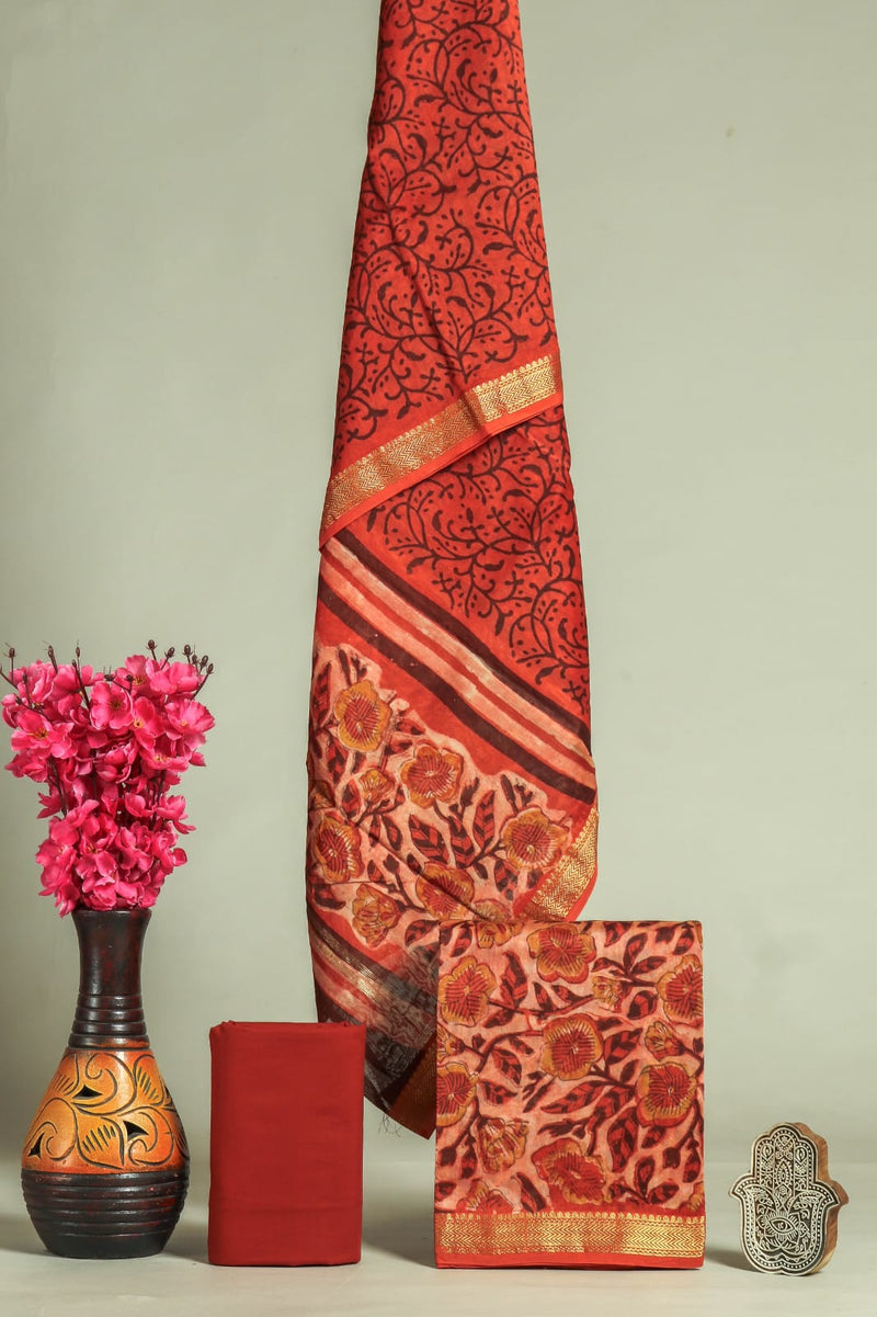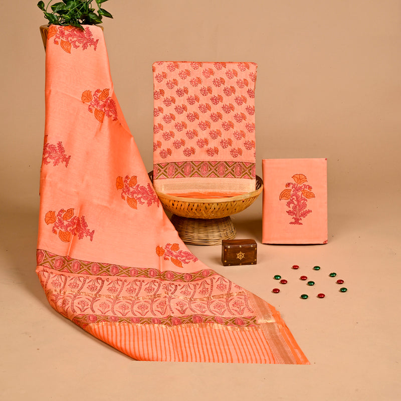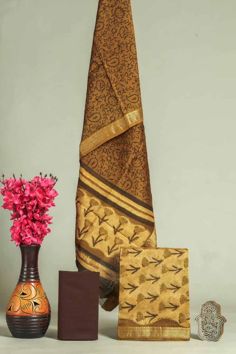 Designer Hand Block Print Maheshwari SilK Suit Set (MSLYS25)