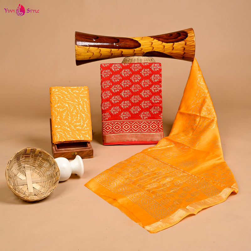 Designer Hand Block Print Maheshwari Silk Suit Set (MSLYS24)