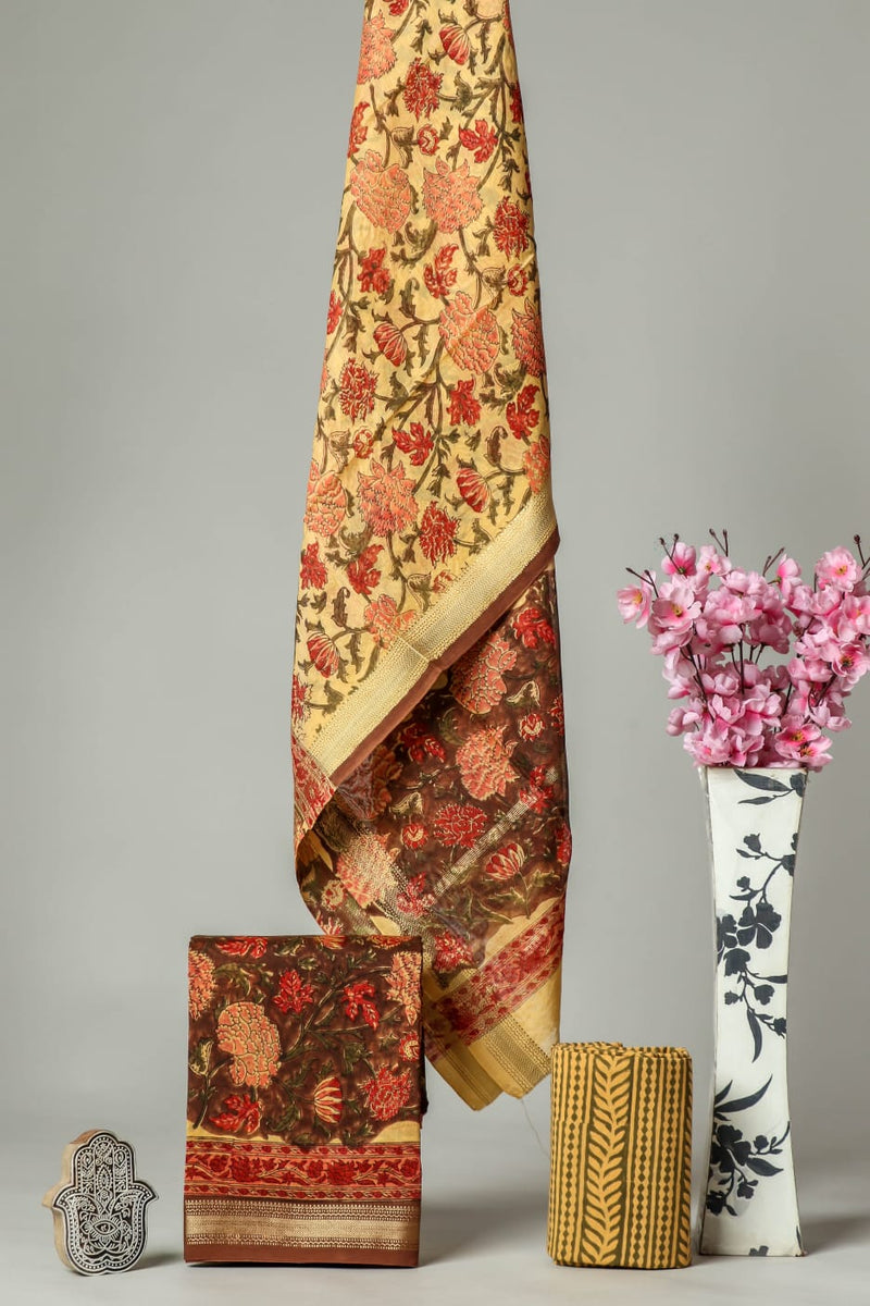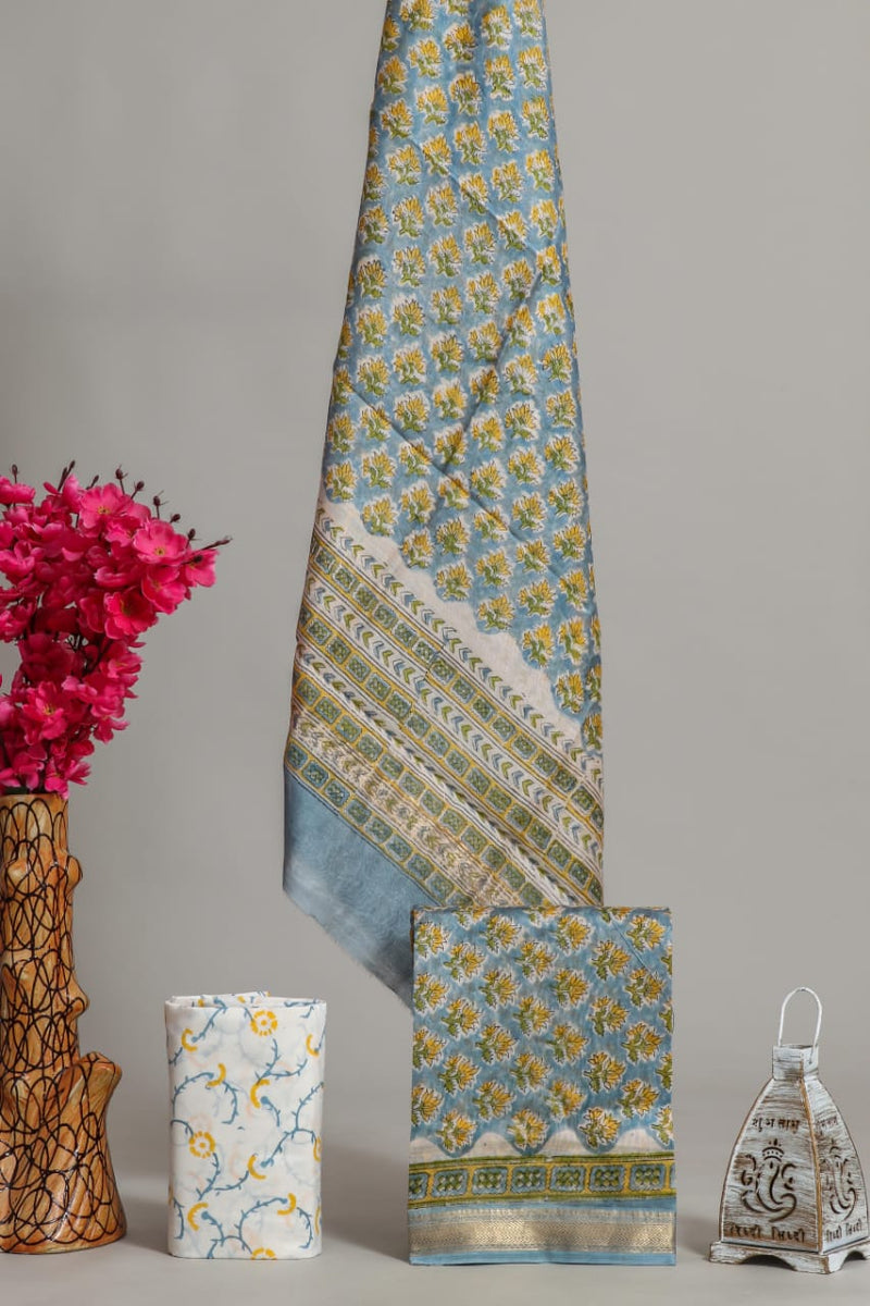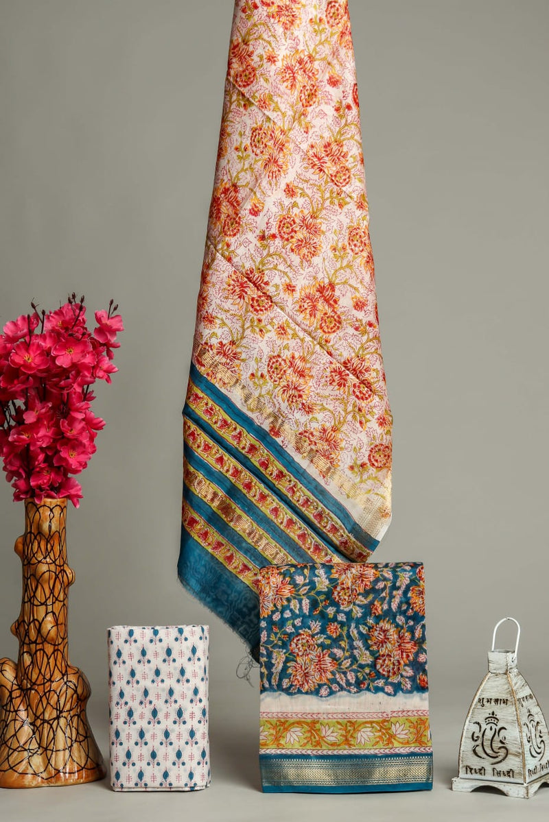 Designer Hand Block Print Maheshwari Silk Suit Set (MSLYS12)