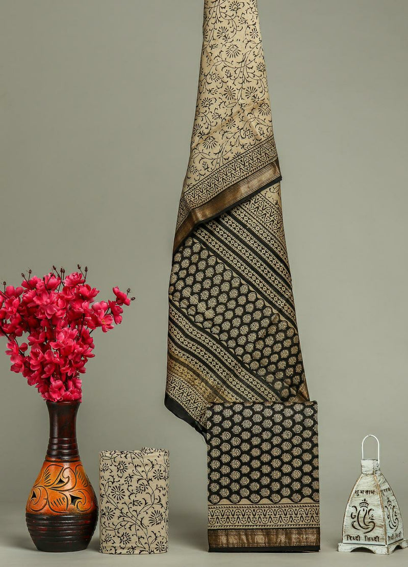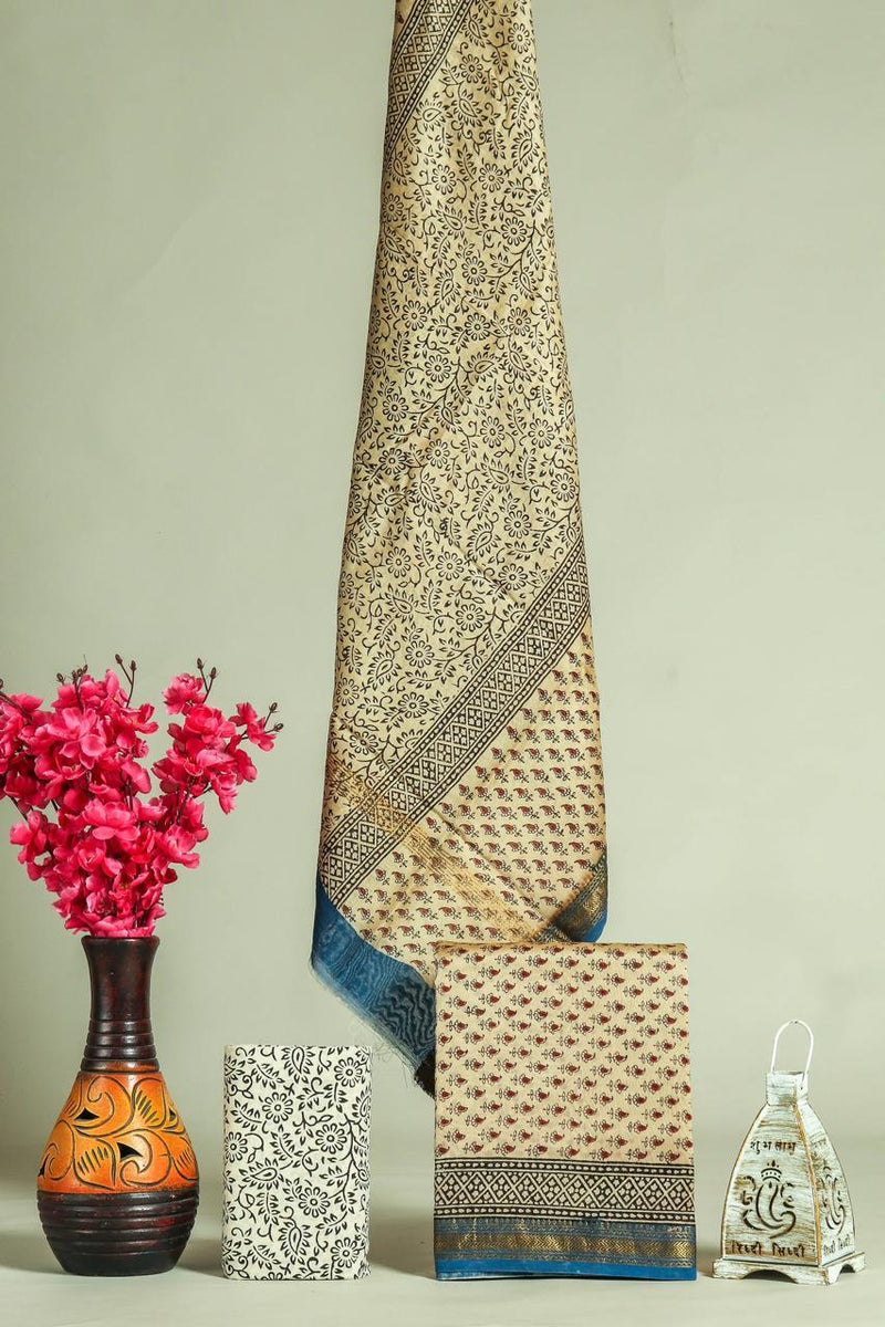Designer Hand Block Print Maheshwari Silk Suit Set (MSLYS27)