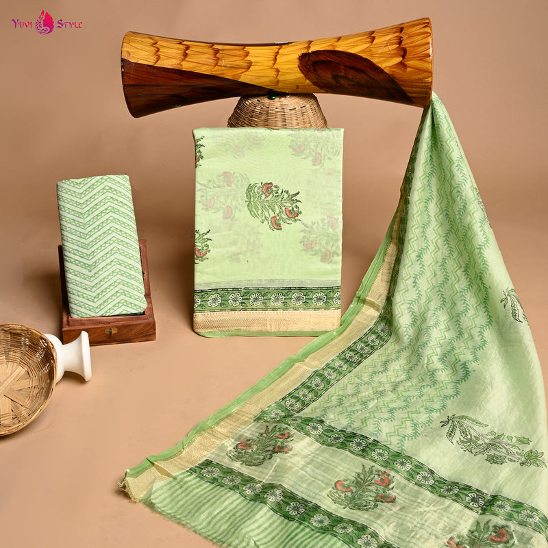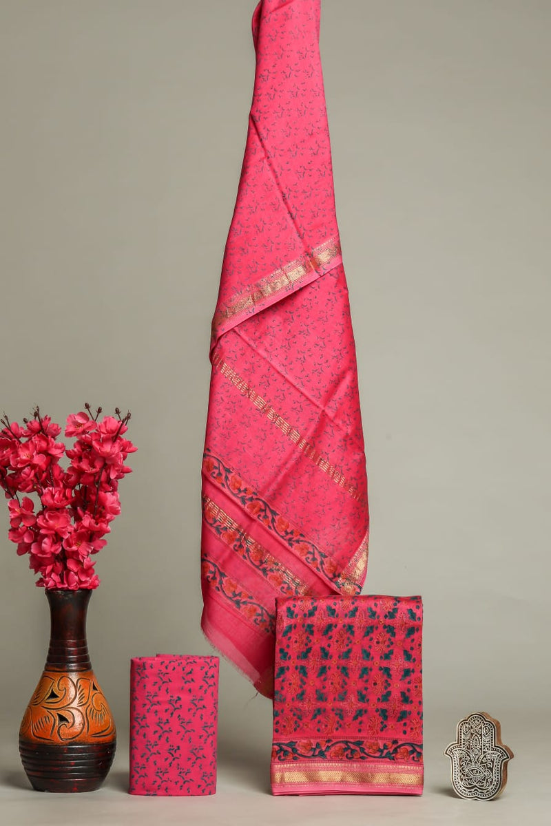 Designer Hand Block Print Maheshwari Silk Suit Set (MSLYS18)