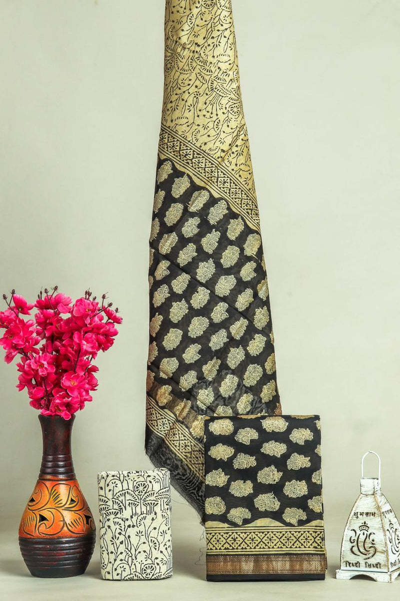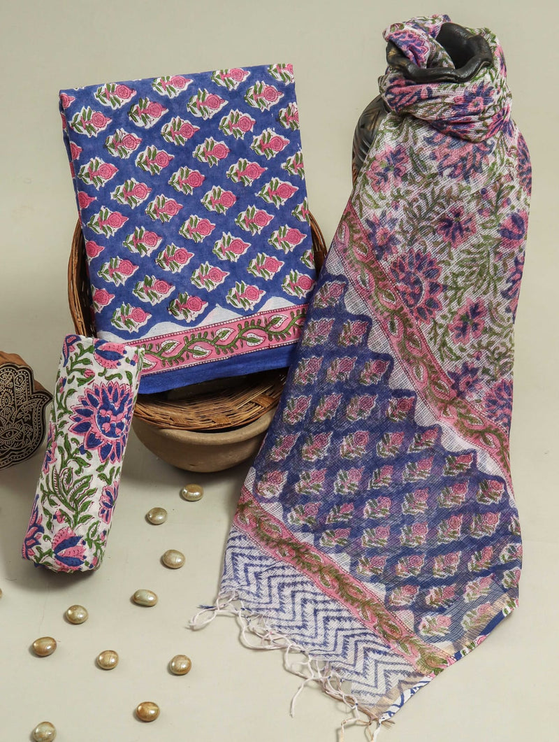 Designer Hand Block Print Pure Cotton Suit Material with Kota Doria Dupat (3CKDYS05)