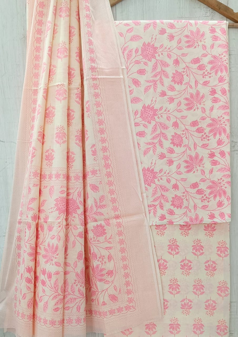 Designer Hand Block Print Pure Cotton Suit Material with Kota Doria Dupatta(3CKDYS04)