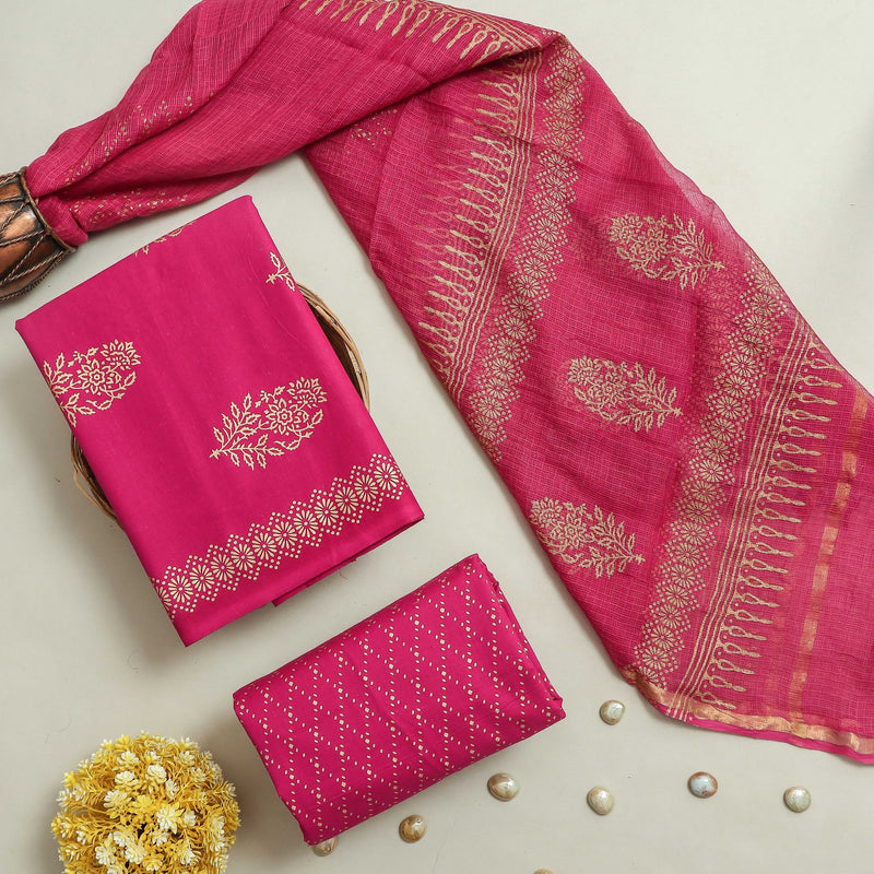 Appealing Floral Hand Block Print Cotton Suit with Kota Doria Dupatta (3CKDYS207)